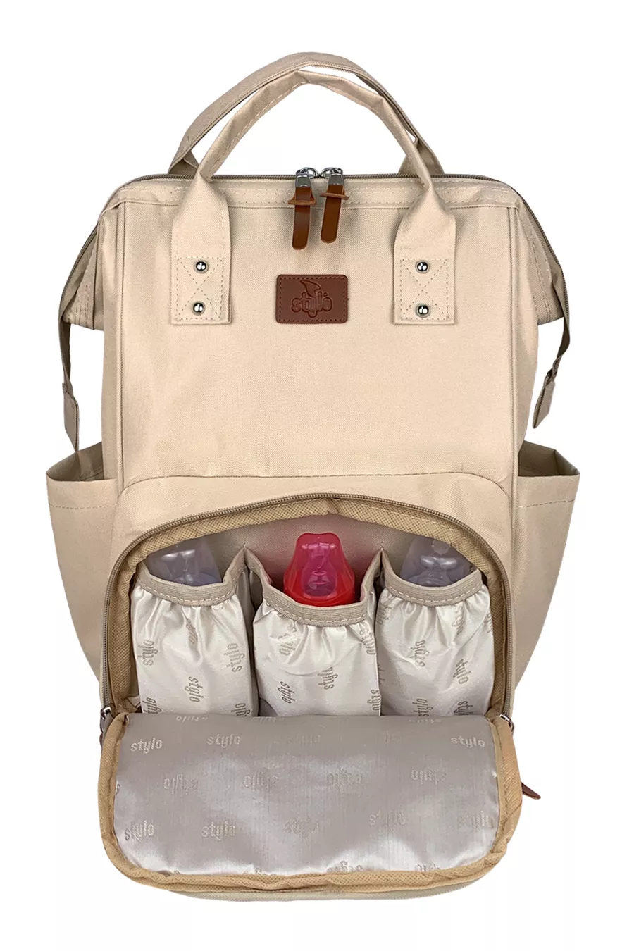 حقيبة ظهر ستار آن للعناية بالطفل مع قارورة هدية - بيج