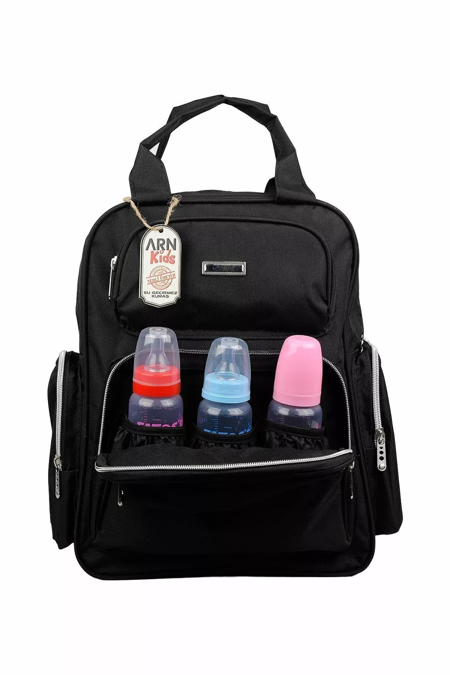 حقيبة ظهر للعناية بالرضع من طراز روما، باللون الأسود، مزودة بجيب للرضاعات الحرارية وحامل لعربة الأطفال