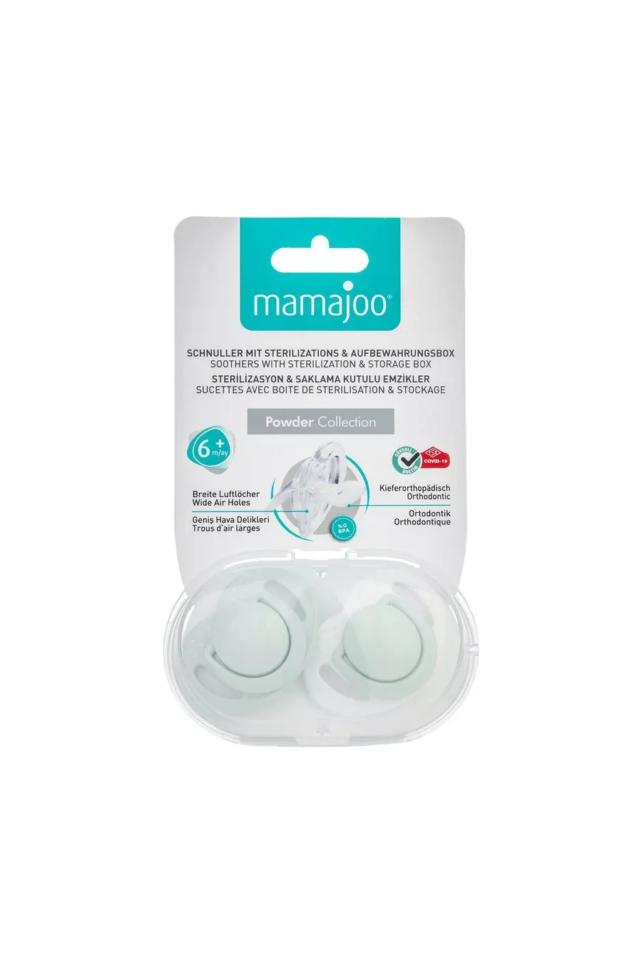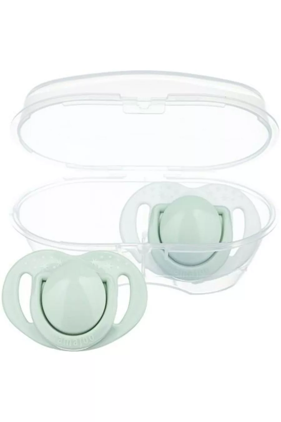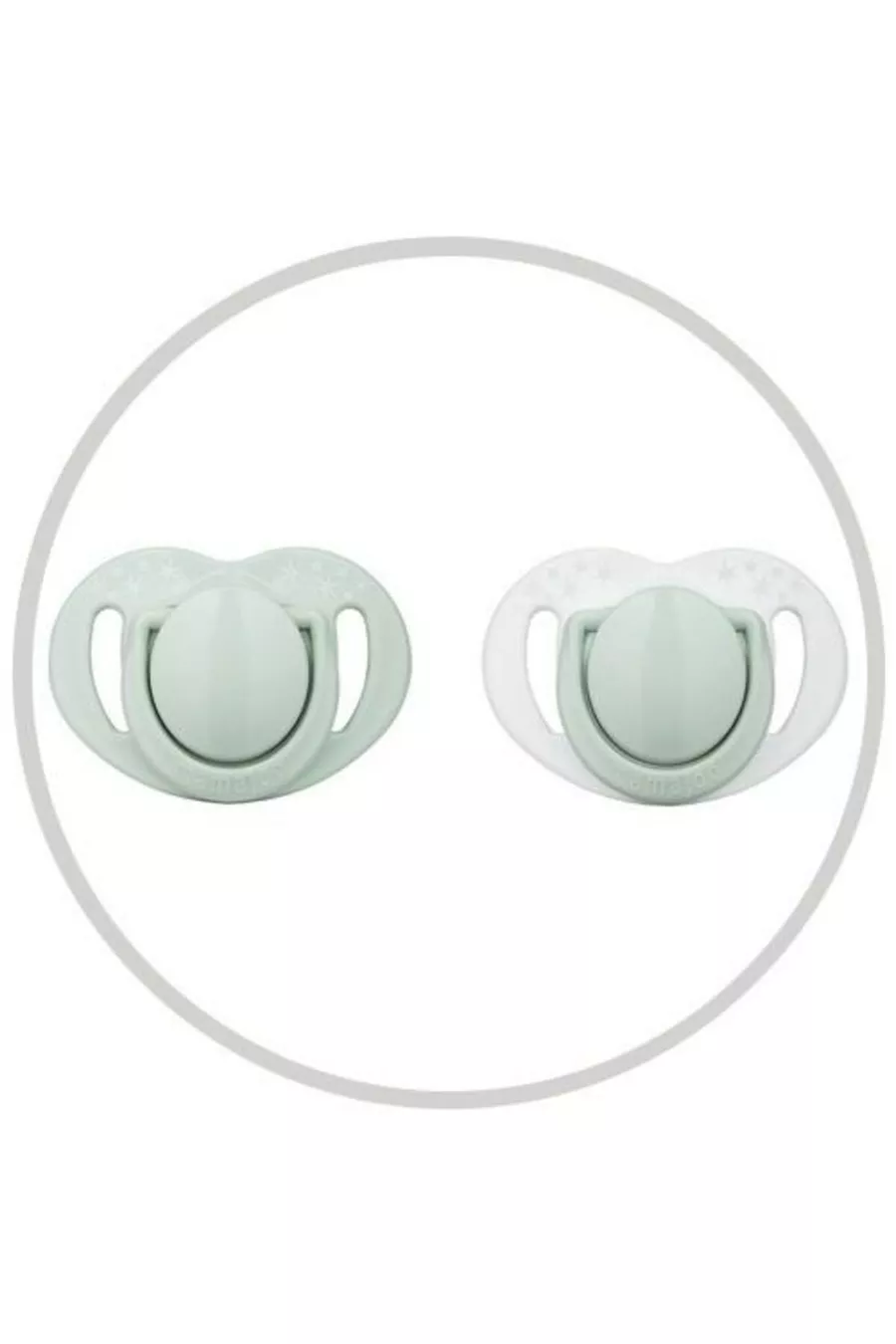 حلمات رضاعة مع علبة تخزين، باللون الأخضر البودري ونقشة، للأطفال حتى 6 أشهر، عبوتان