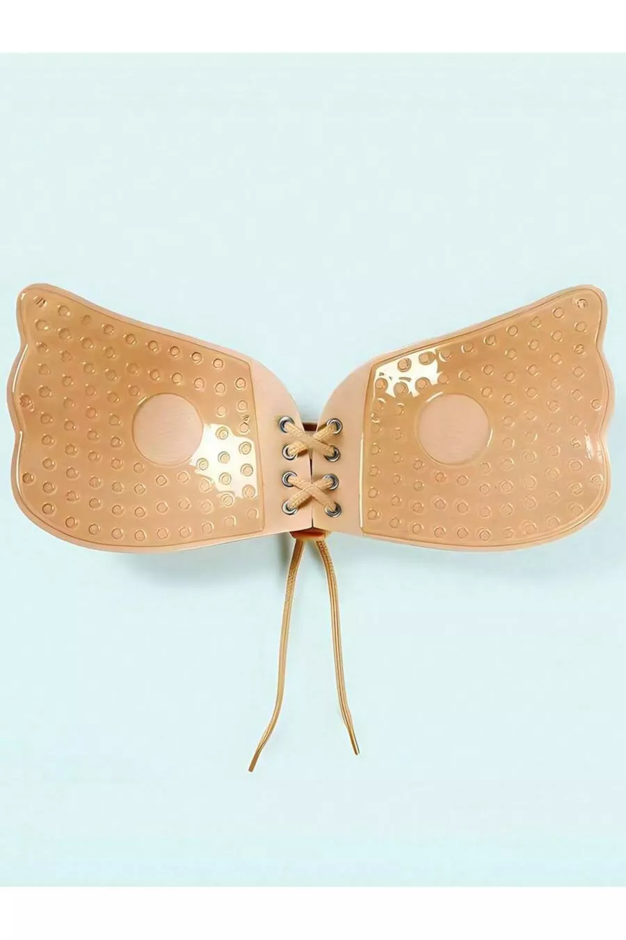 حمالة صدر قماشية بدون حمالات غير مرئية للنساء بلون البشرة مع شرائط لاصقة