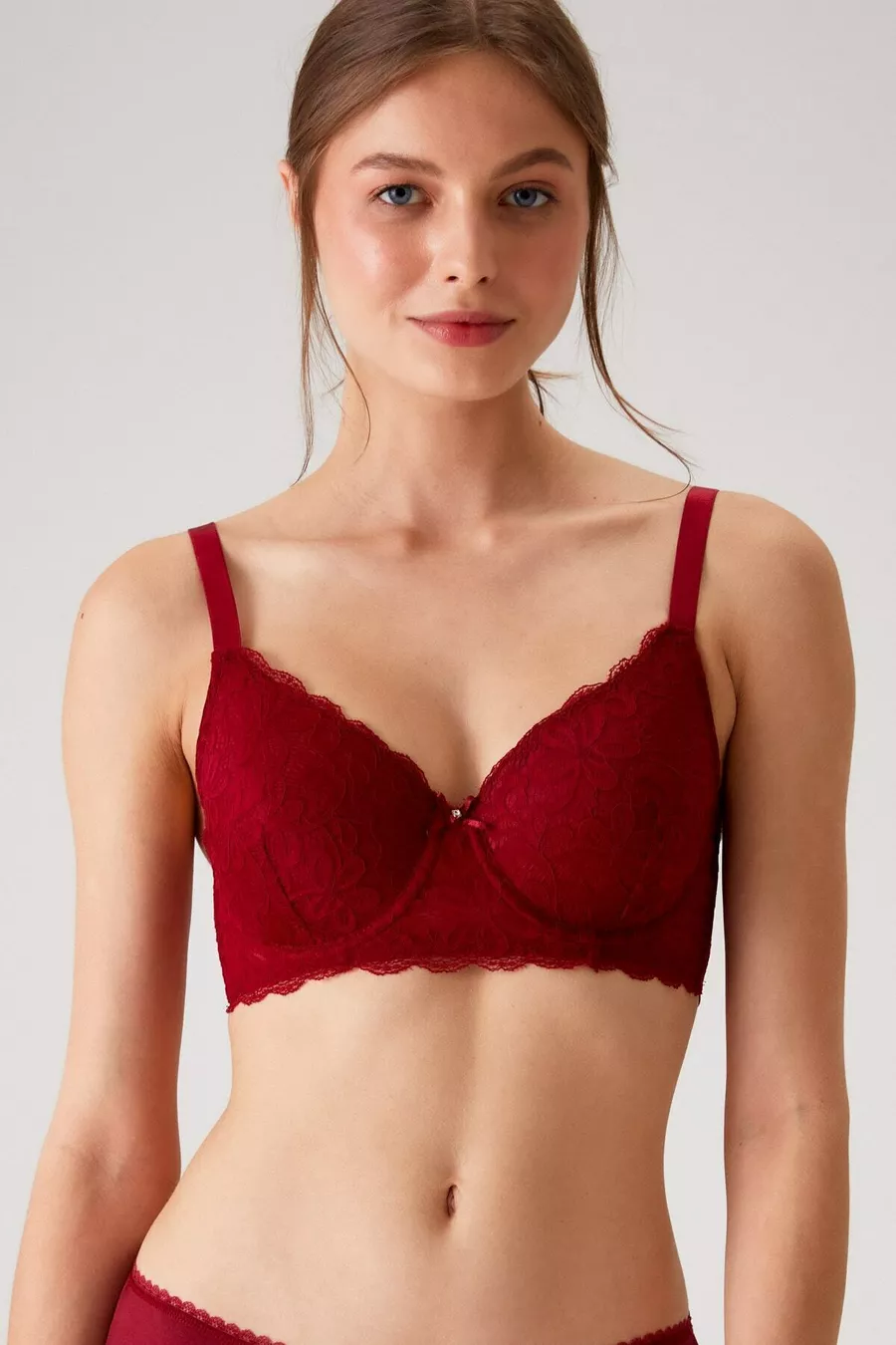 حمالة صدر نسائية بورغندي برشلونة بدون دعامة، بحمالات سميكة، دانتيل ومشد