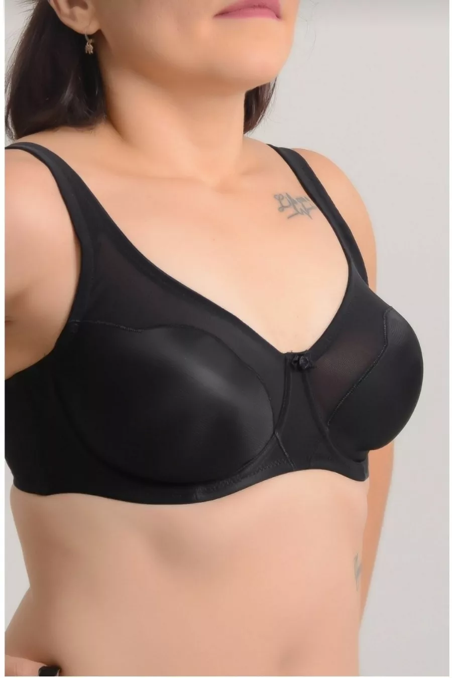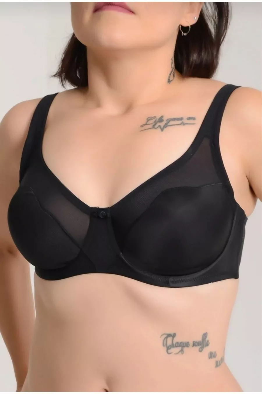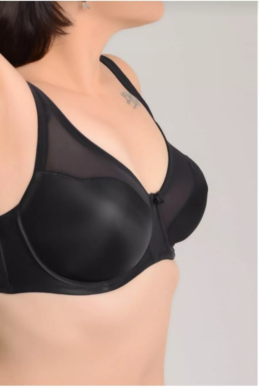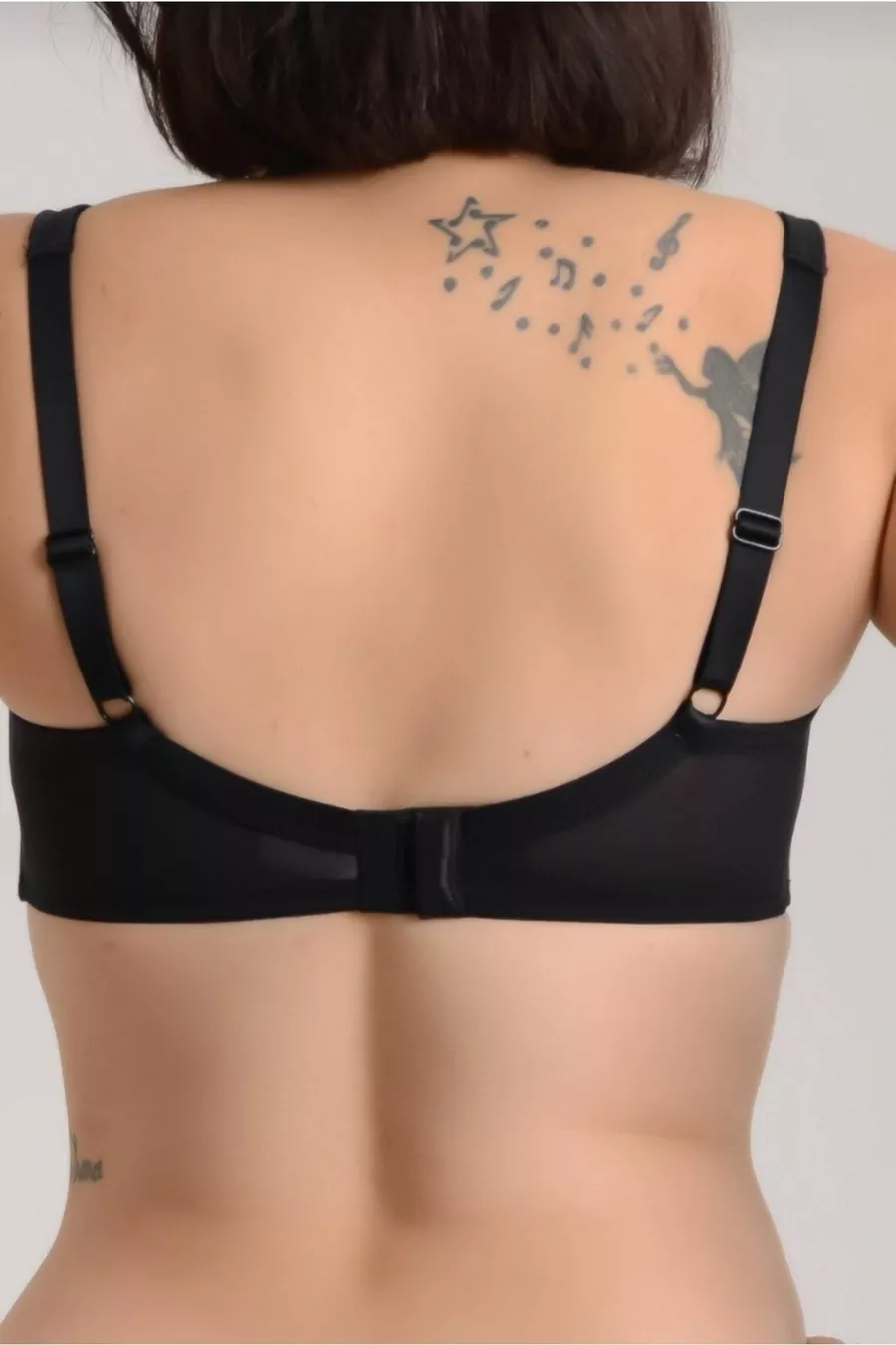 حمالة صدر مينيمايزر بلا دعم مع تفاصيل تول وبناء صدر Glamour -b باللون الأسود