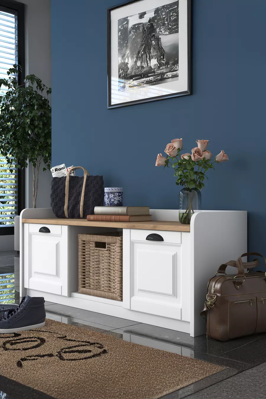 المادة: سونتلام اللون: أبيض الارتفاع: 45 سم العرض: 120 سم العمق: 45 سم مدة الضمان: سنتان النمط: إسكندنافي الموضوع / النمط: حديث المنشأ: تركيا الخاصية: مزود بغطاء