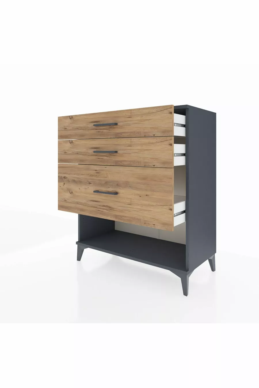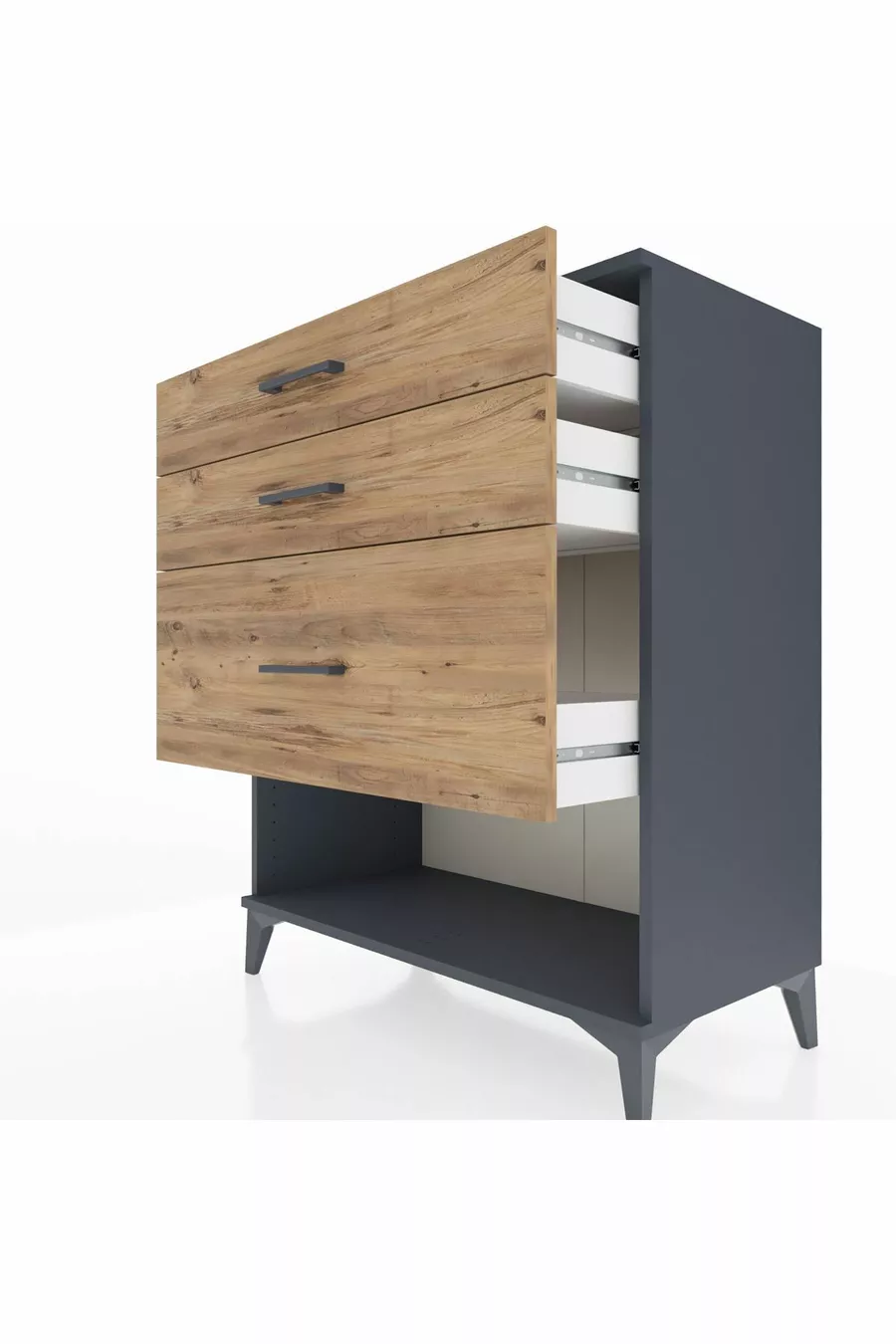خزانة أدراج هيفريون بثلاثة أدراج - أنثراسيت وصنوبر