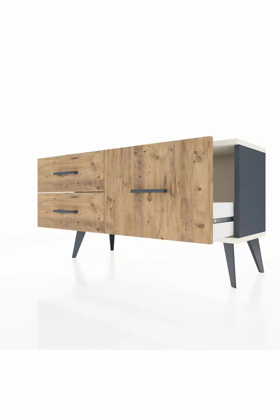 خزانة أدراج أرجيس بثلاثة أرفف أنثراسيت-حجر الصوان/صنوبر
