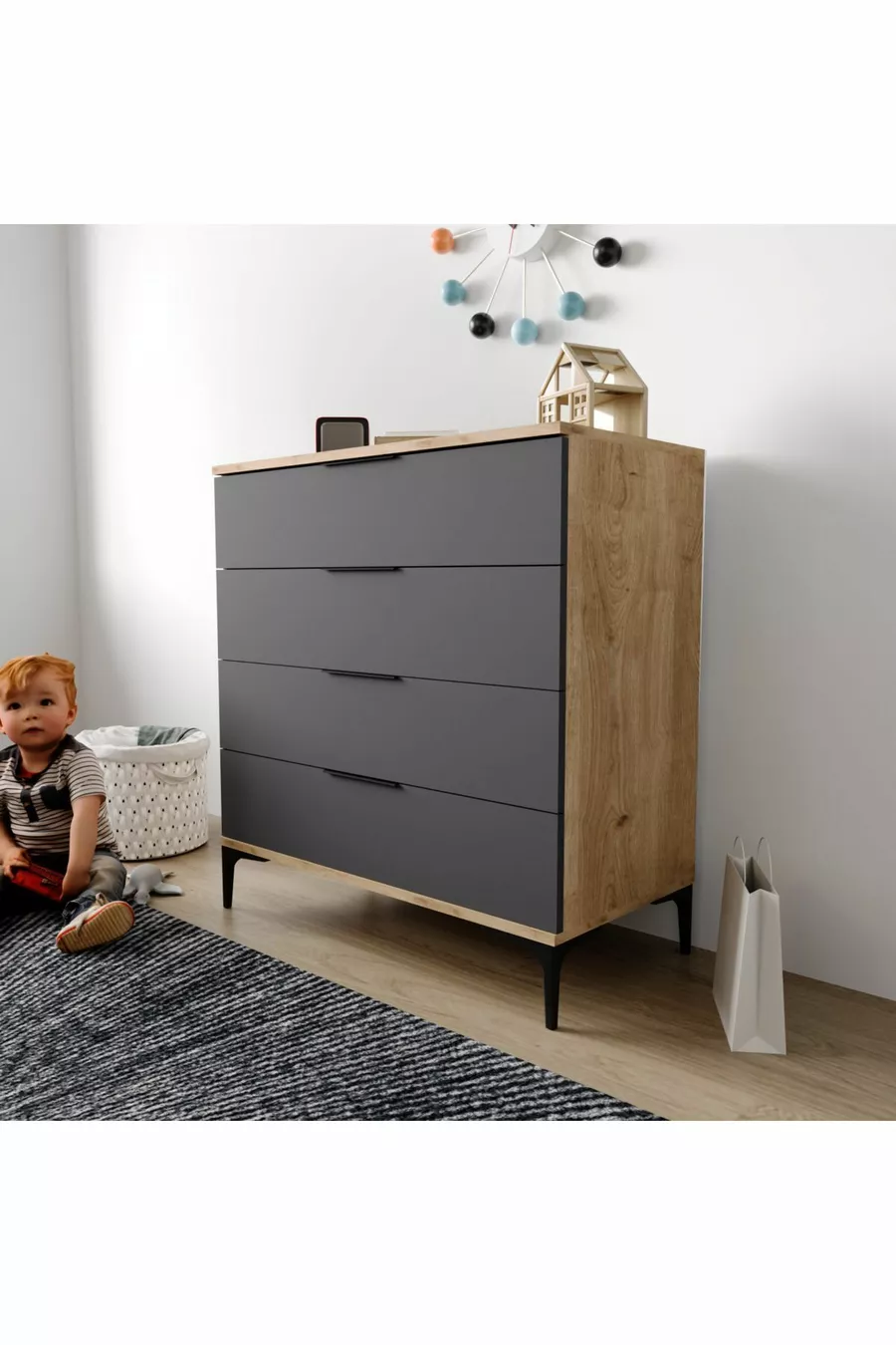 اللون: رمادي مدة الضمان: سنتان المادة: سونتالام الارتفاع: 92 سم العرض: 80 سم العمق: 45 سم عدد الأدراج: 4 ميزة المنتج: مزود بأدراج الأسلوب: إسكندنافي الموضوع / النمط: حديث المنشأ: تركيا الميزة: تهوية