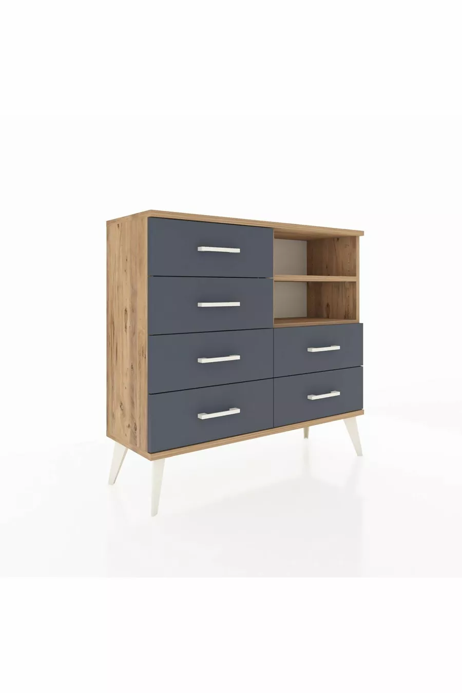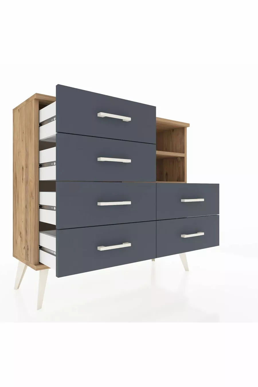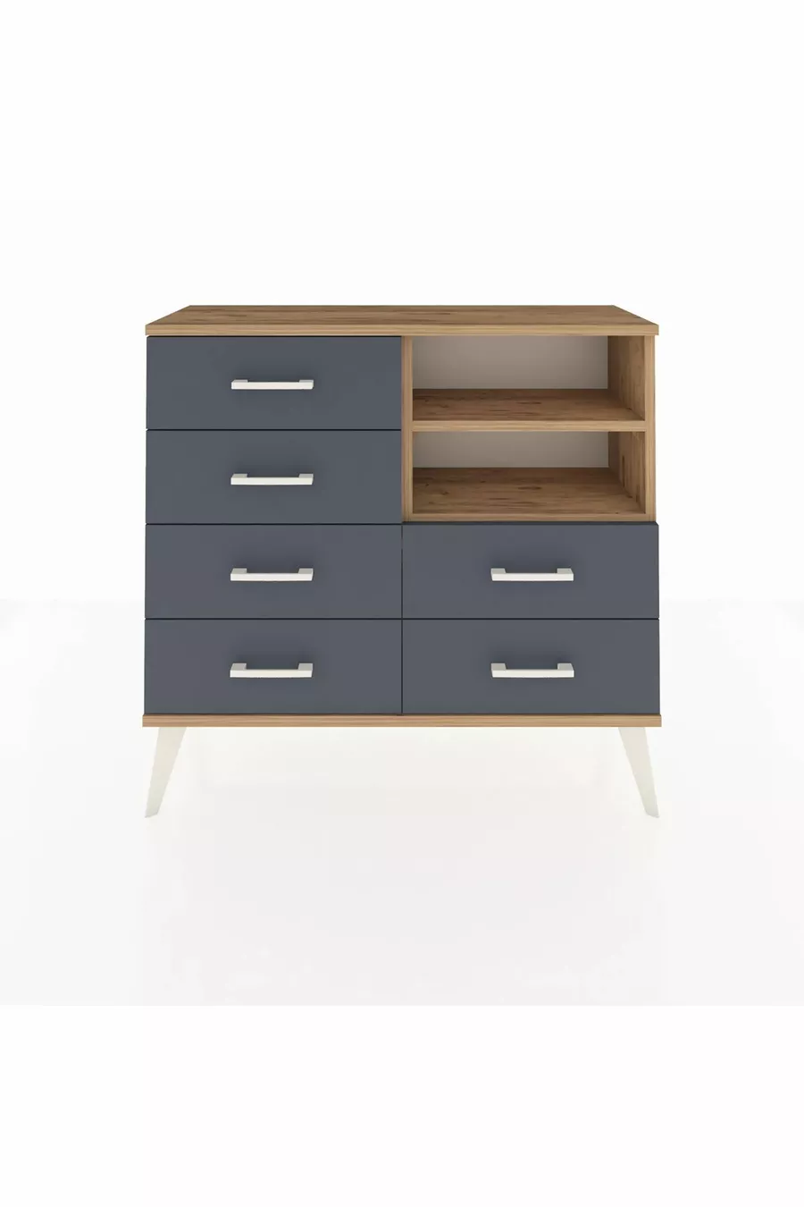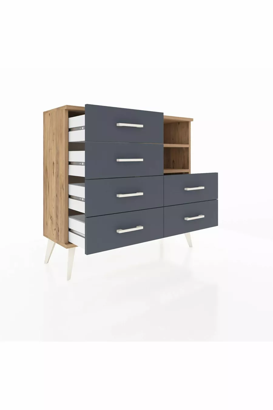 خزانة أرجس بستاند درج 6 ورفين، خشب الصنوبر/أنثراسيت