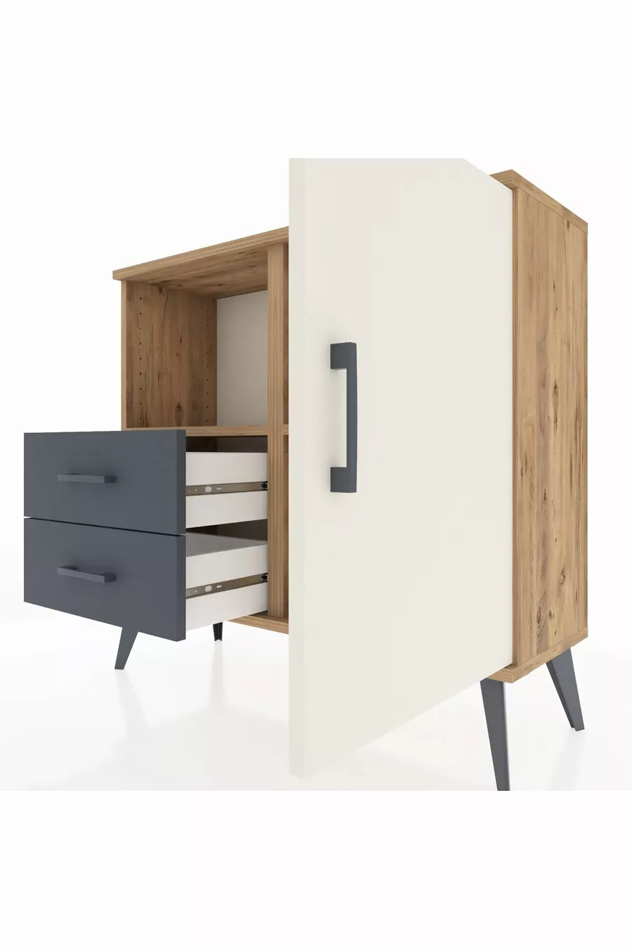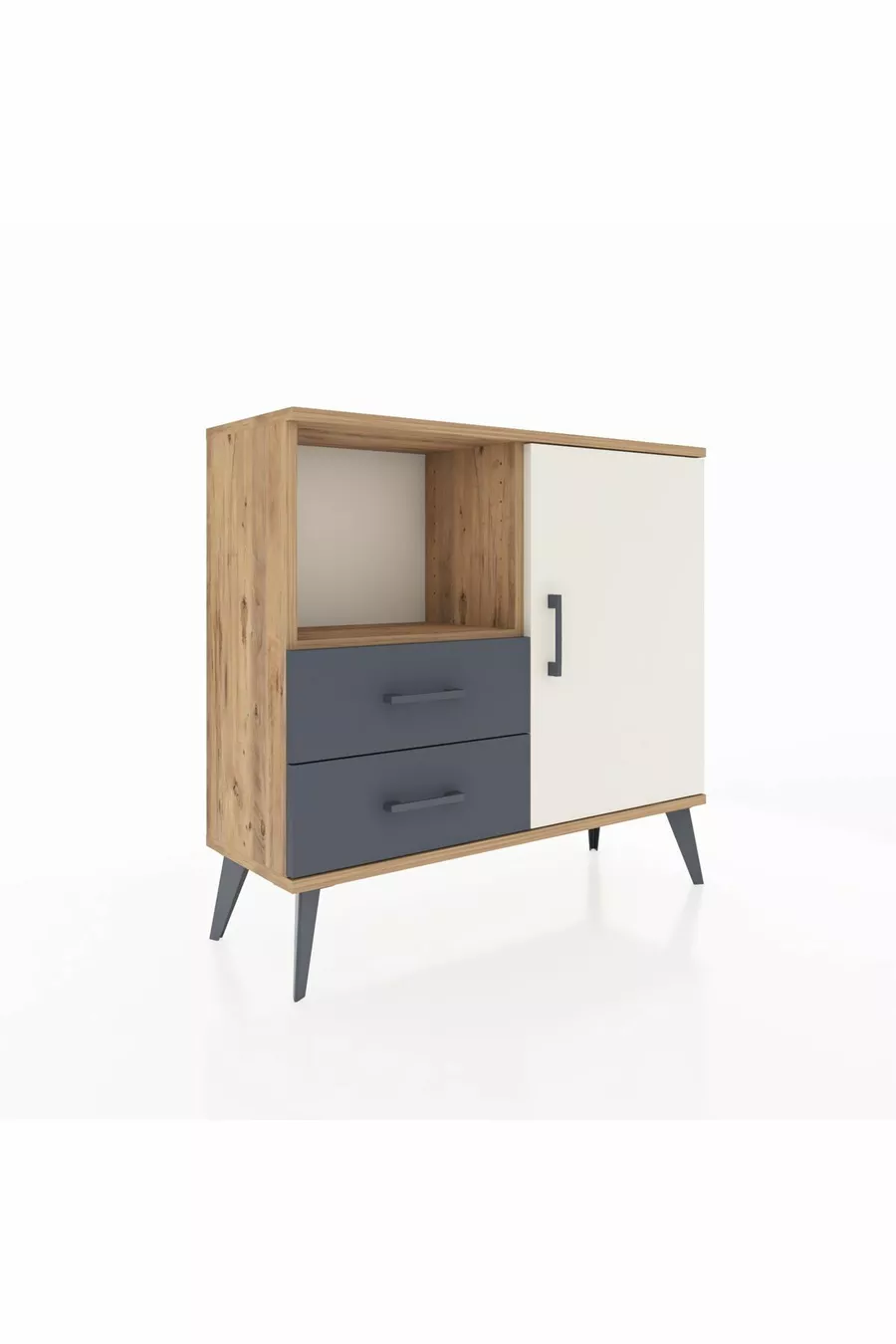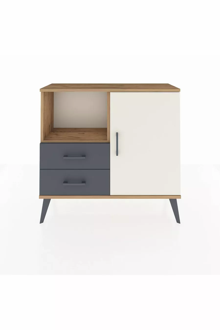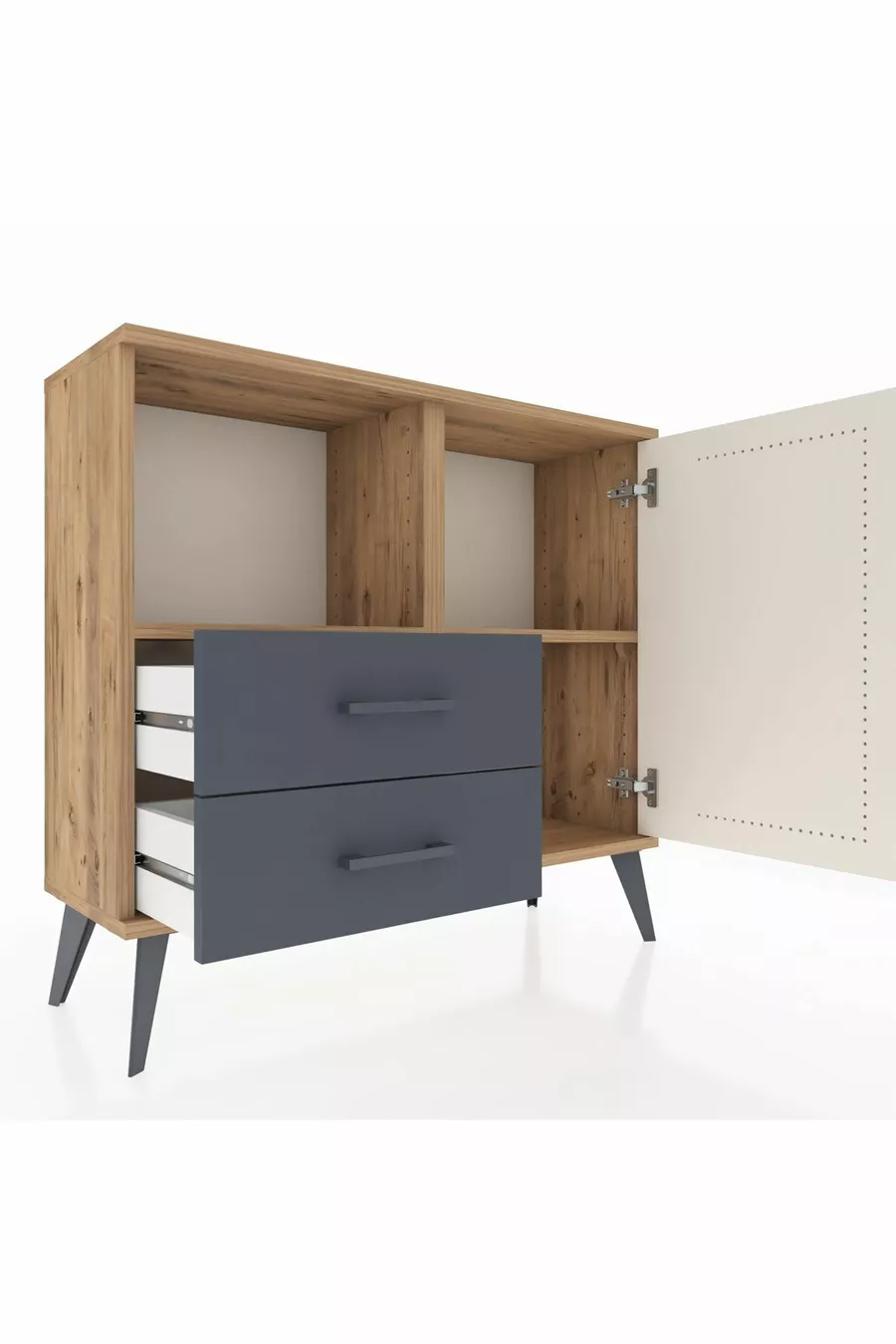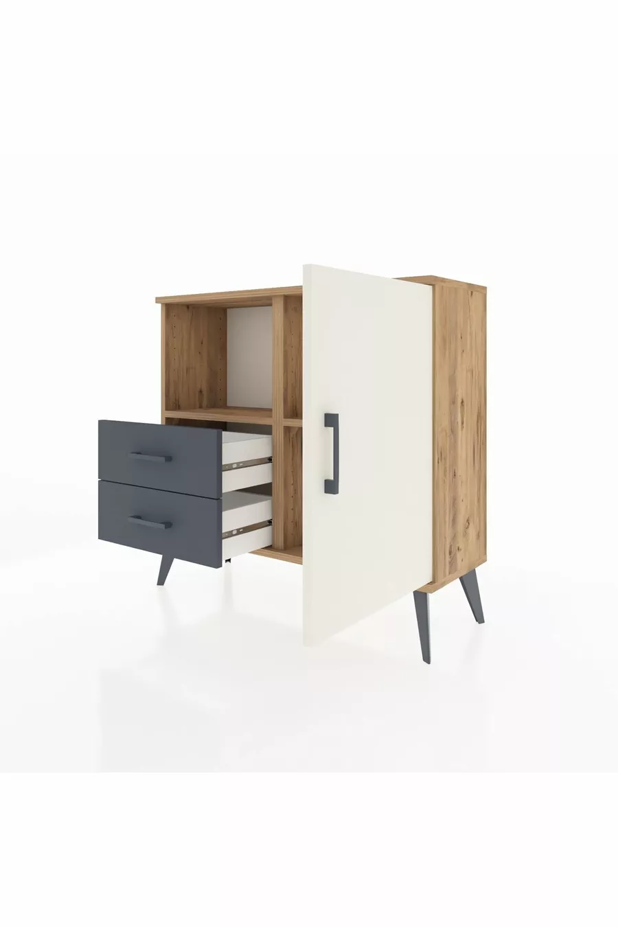 خزانة أرجس برافين 2 رف و2 درج وباب واحد من خشب الصنوبر - رمادي داكن/رملي