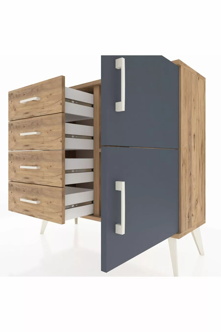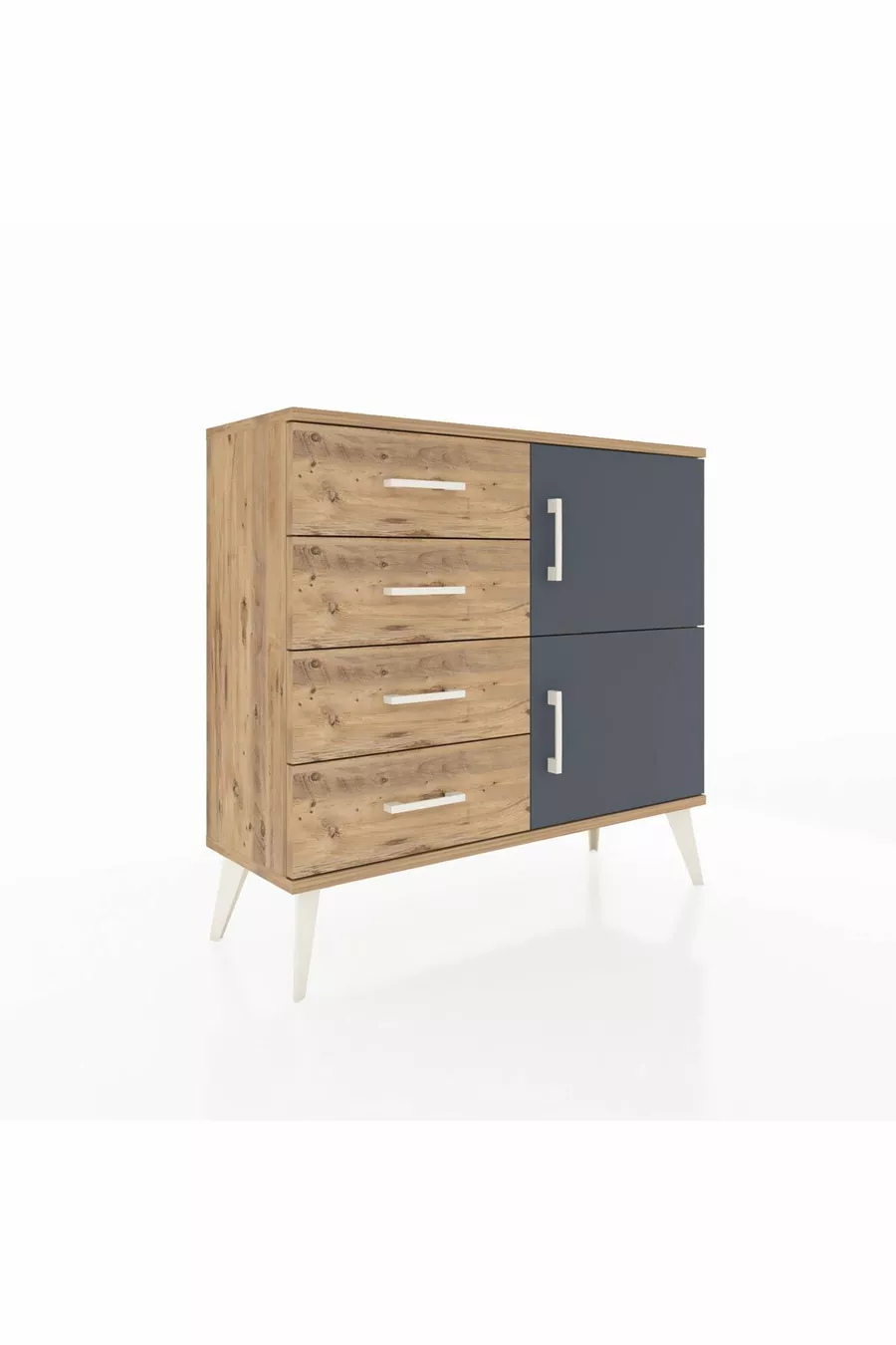 خزانة أرجس ذات رف واحد و4 أدراج و2 أبواب، صنوبر - أنثراسيت/صنوبر