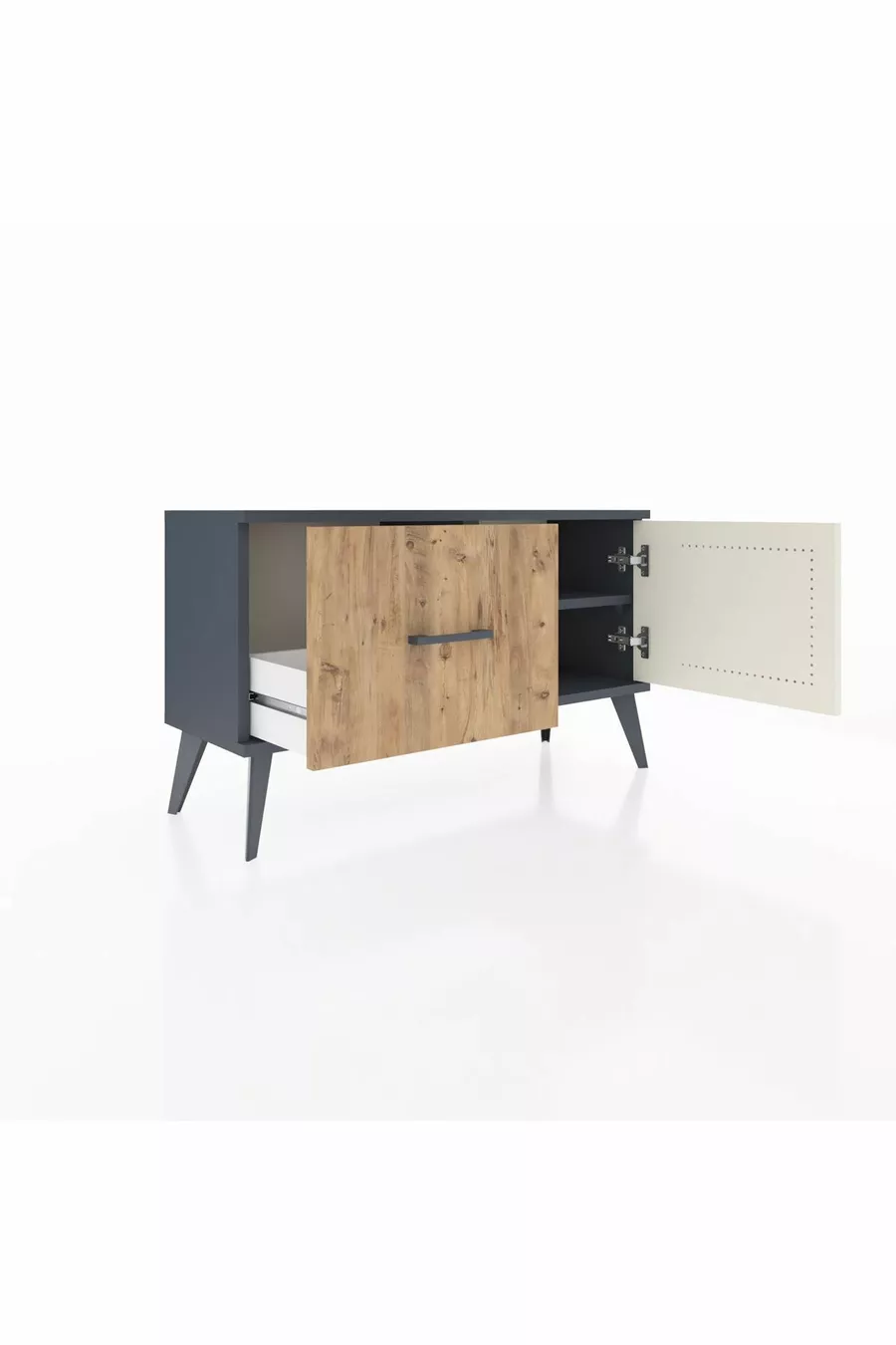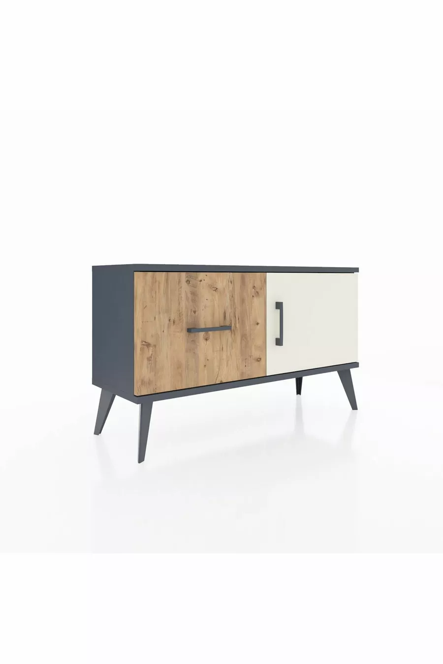 خزانة أرجس رف واحد، درج واحد، باب واحد، أنثراسيت-حجر رملي/صنوبر