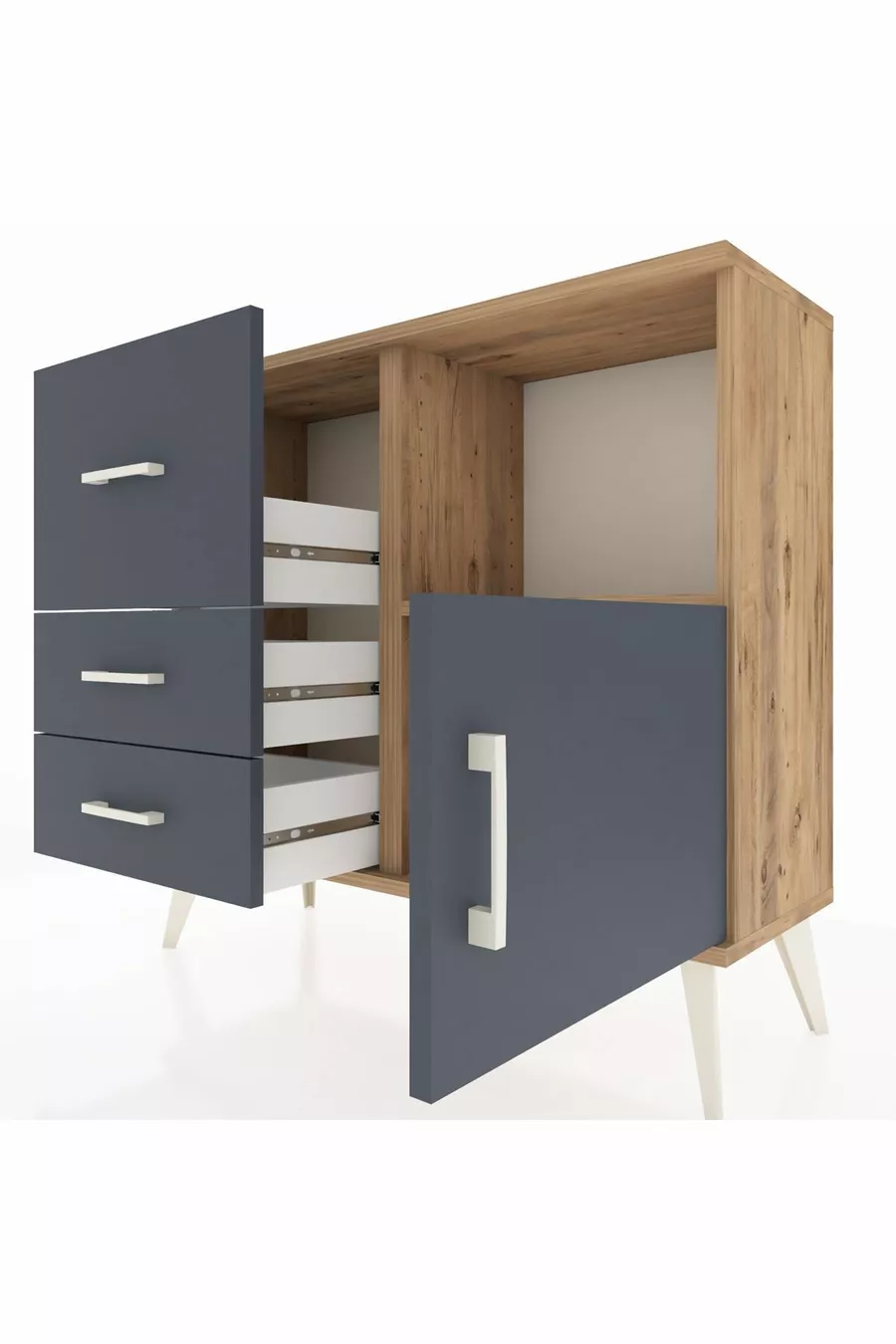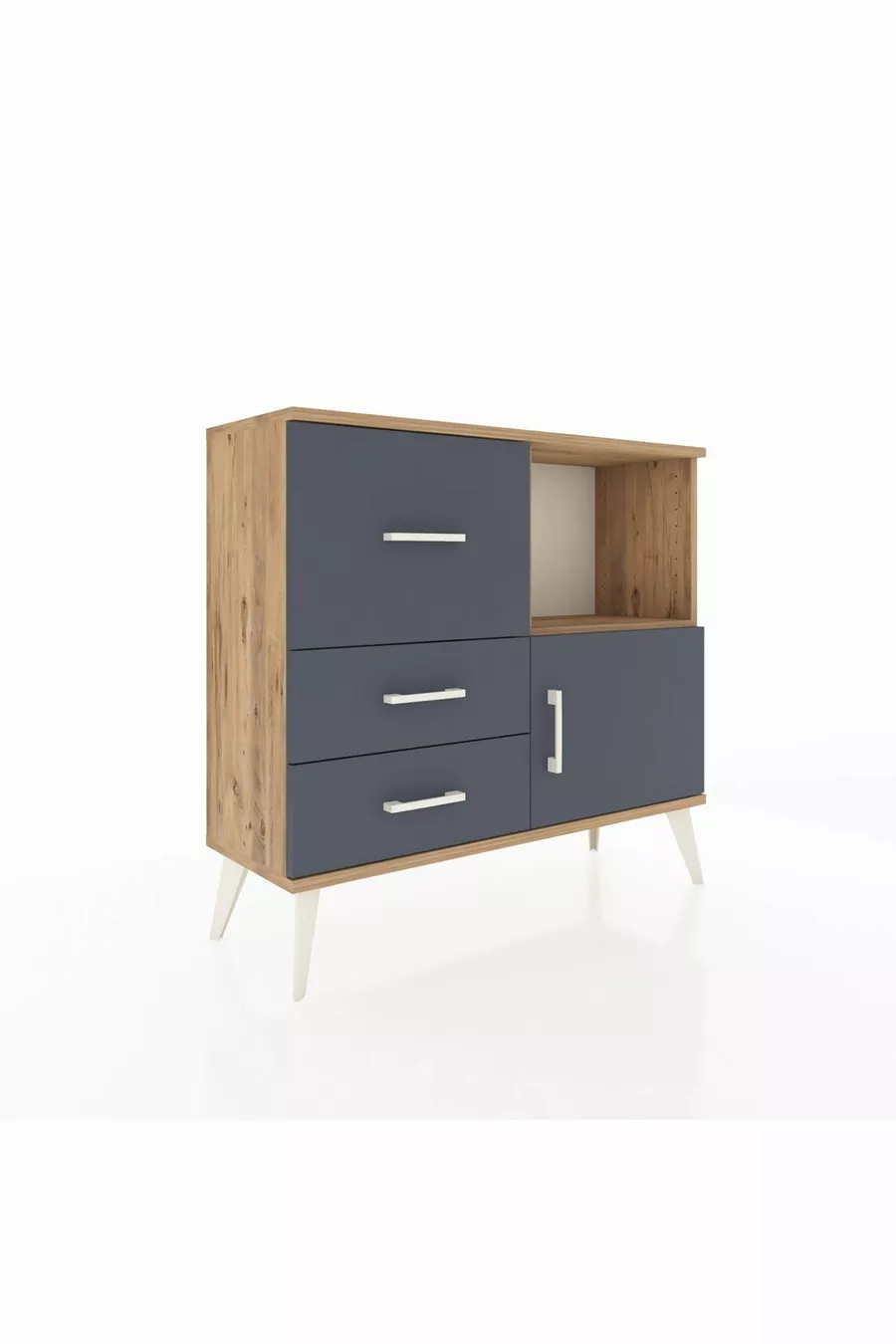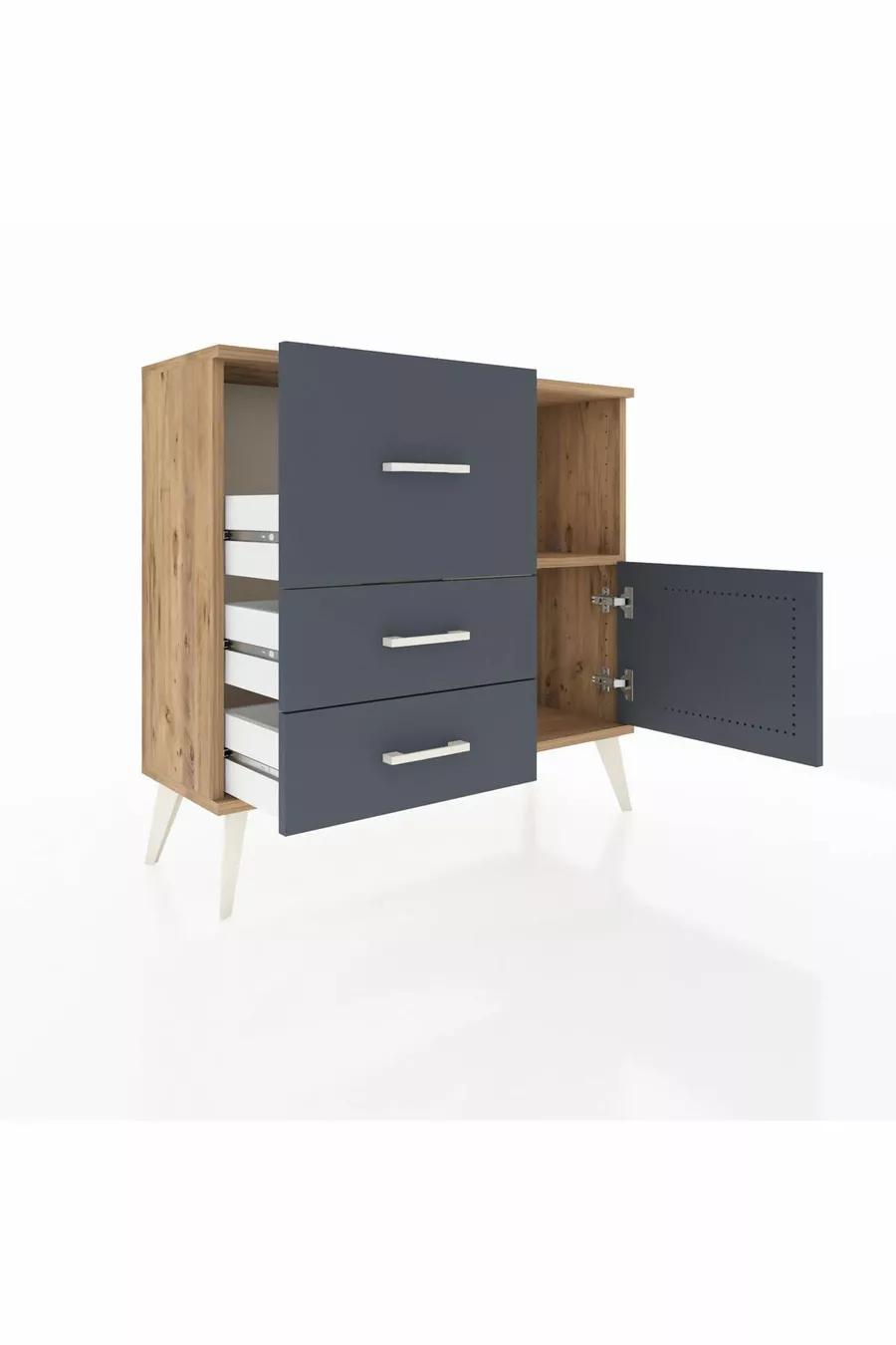 خزانة أرجس بدرج واحد و3 أدراج وباب مفرد، شجر الصنوبر - أنثراسيت