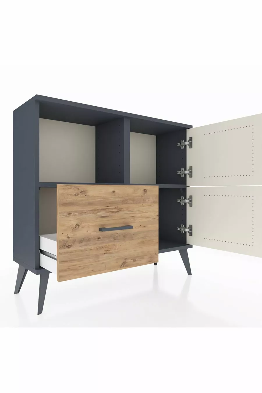 خزانة أرجس بدرجين ورفين وغطائين باللون الرمادي الداكن/صنوبر