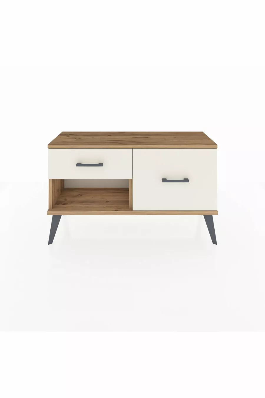 خزانة أرجيس ذات درجين من خشب الصنوبر - لون صنوبر/أبيض رملي