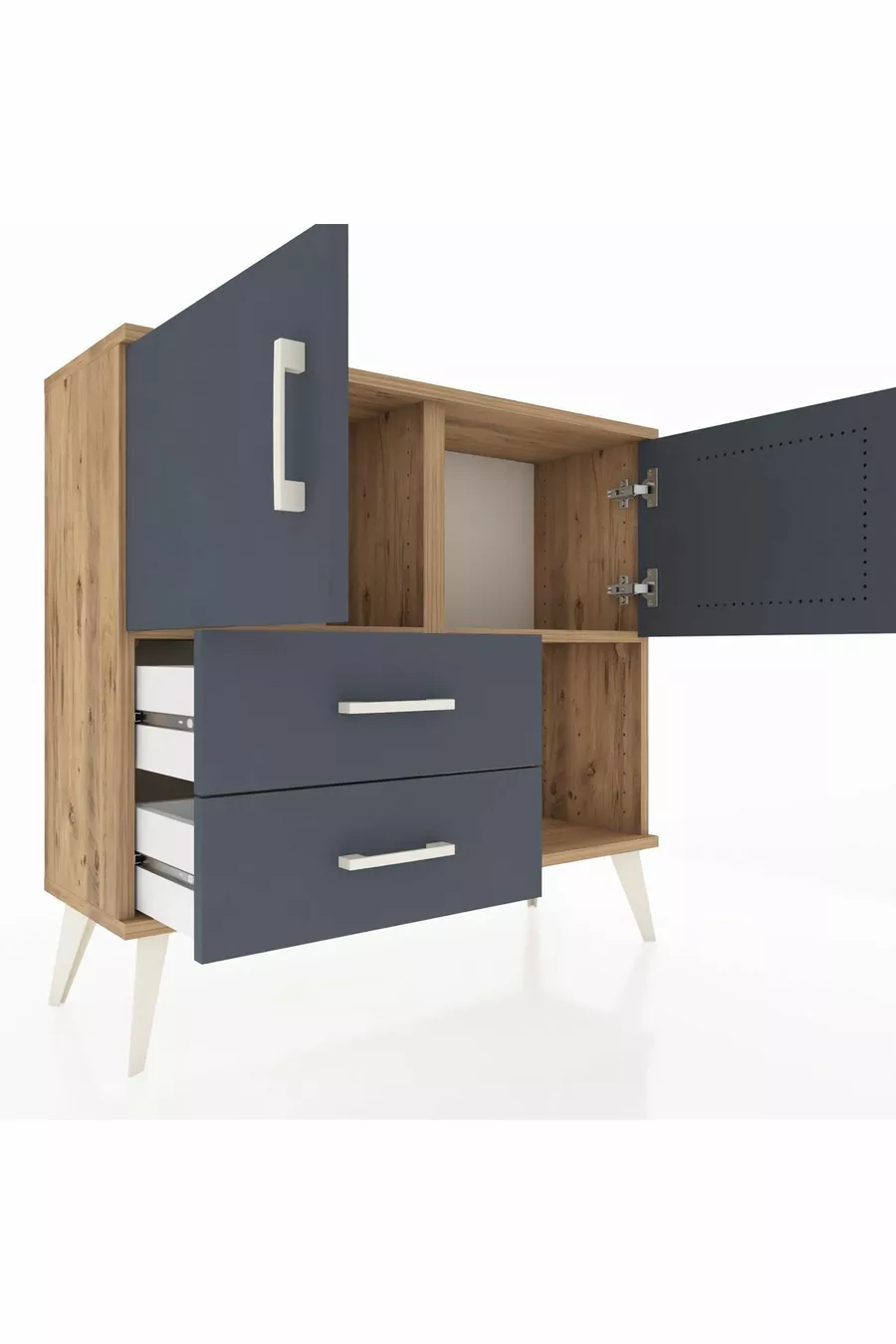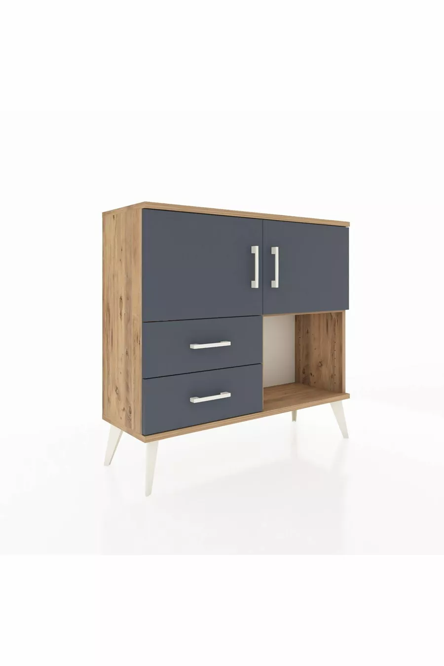 خزانة أرجيس مع رفين، درجين، وغطاءين، خشب الصنوبر - أنثراسيت