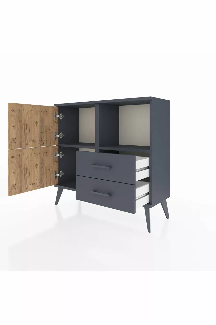 خزانة أرجيس ذات رفين ودرجين وغطائين أنثراسيت-صنوبر/أنثراسيت