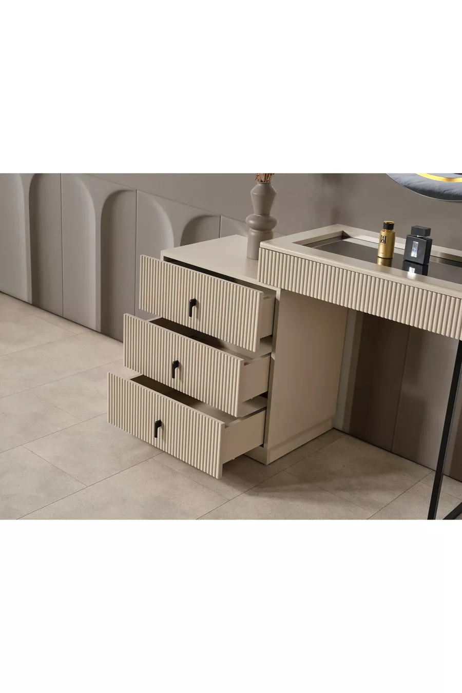 اللون: بيج مدة الضمان: سنة واحدة المادة: MDF الارتفاع: 85 سم العرض: 130 سم العمق: 45 سم عدد الأدراج: 4 ميزة المنتج: يحتوي على أدراج الطراز: عصري الموضوع / الطراز: عصري البلد المنشأ: تركيا