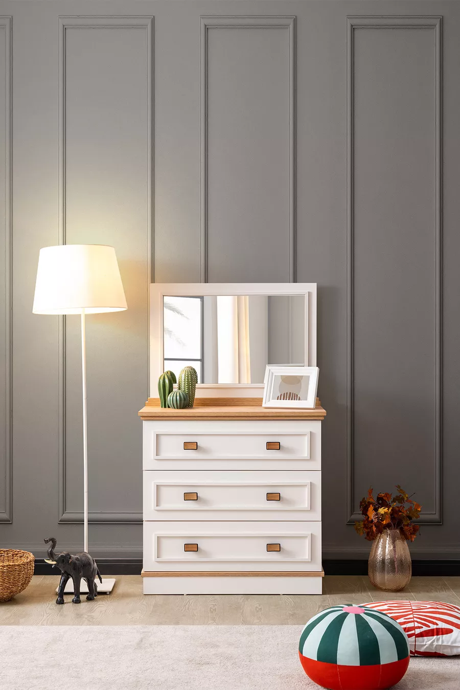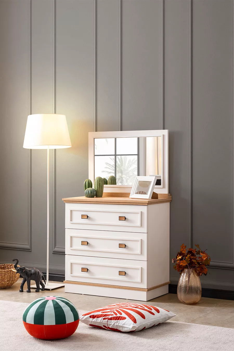 اللون: أبيض مدة الضمان: سنتان المادة: سونتالام الارتفاع: 140 سم العرض: 84 سم العمق: 43 سم عدد الأدراج: 3 ميزة المنتج: مزود بمرآة الأسلوب: عصري الموضوع / الأسلوب: عصري المنشأ: تركيا الخاصية: مزود بأدراج
