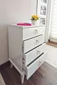 اللون: أبيض المادة: سنتالام الارتفاع: 81 سم العرض: 51 سم العمق: 40 سم عدد الأدراج: 4 ميزة المنتج: مع أدراج النمط: كلاسيكي الخاصية: مع أدراج