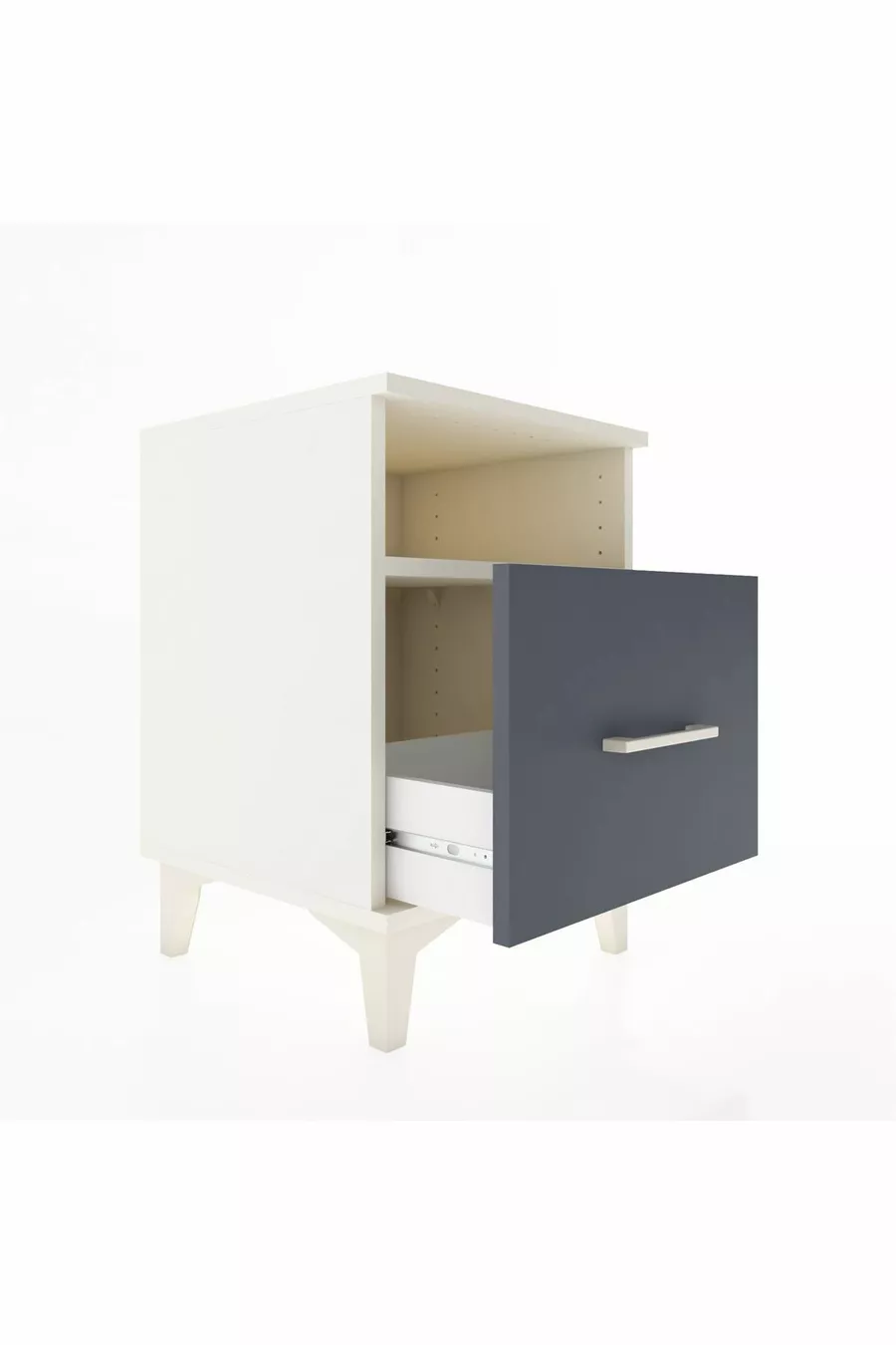 خزانة بجانب السرير هايبريون مع رف واحد ودرج واحد، لون حجر القمر-أنتراسيت