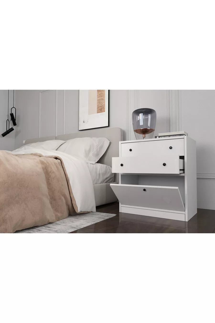 خزانة بيضاء ببابين ودرجين بدون شرائط