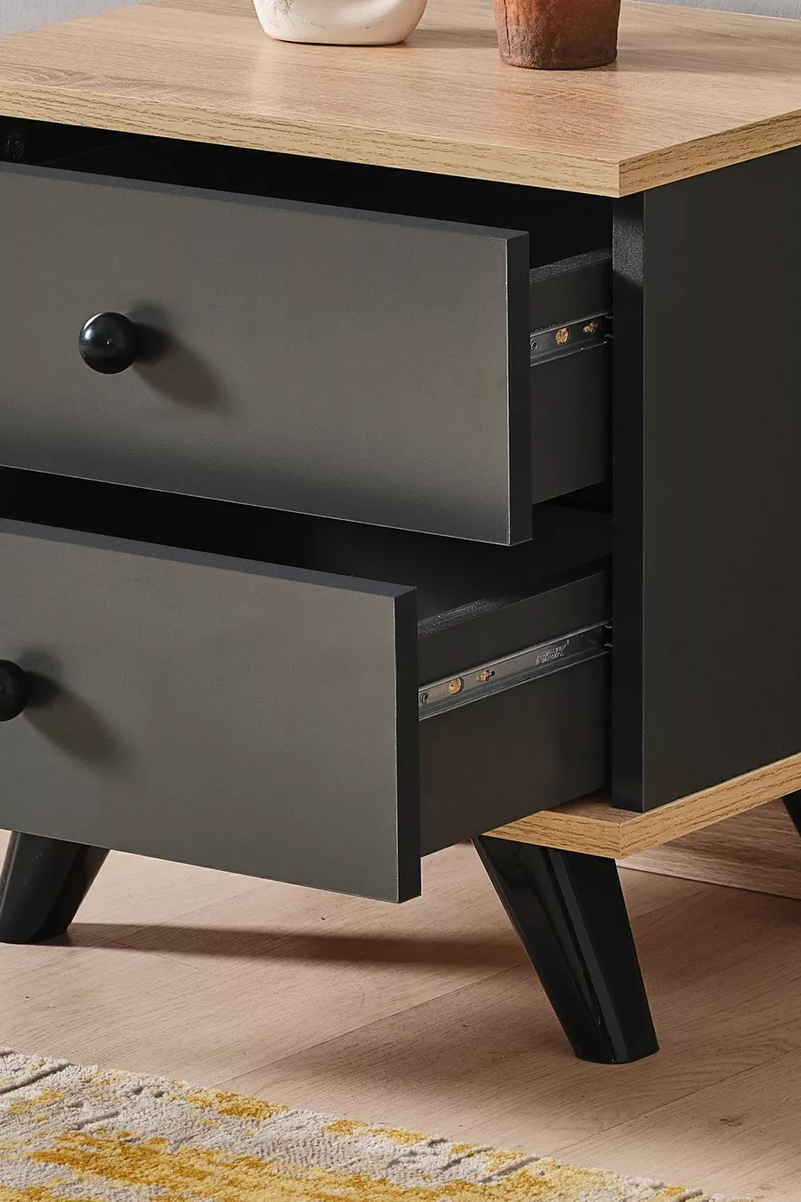 المواد: سنتالام اللون: رمادي مدة الضمان: سنتان عدد الأدراج: 2 الارتفاع: 49 سم العرض: 45 سم العمق: 36 سم الأسلوب: حديث الموضوع / الأسلوب: حديث البلد المنشأ: تركيا الخاصية: مزود بأدراج