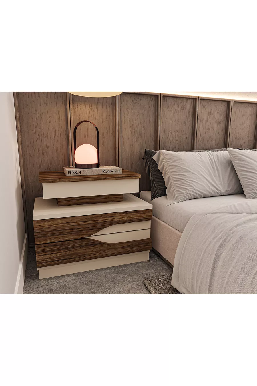 اللون: بني وظيفة السرير: بدون قاعدة وظيفة الخزانة: مزودة بباب مادة هيكل الخزانة: MDF عدد الأبواب: بدون أبواب الأسلوب: حديث الموضوع / النمط: حديث المنشأ: تركيا الخاصية: مزودة بأدراج
