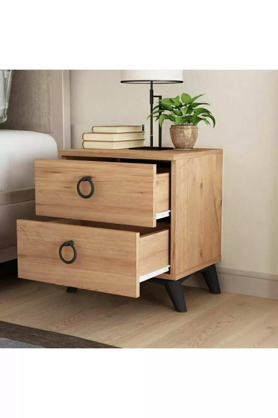 خزانة جانبية سيمورغ ذات درجين من خشب الصنوبر الأطلسي