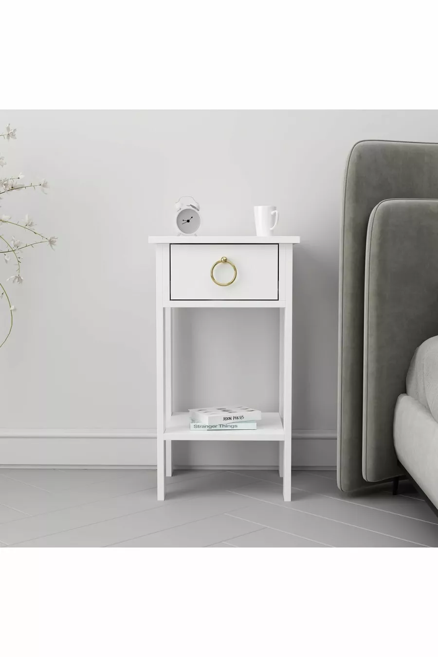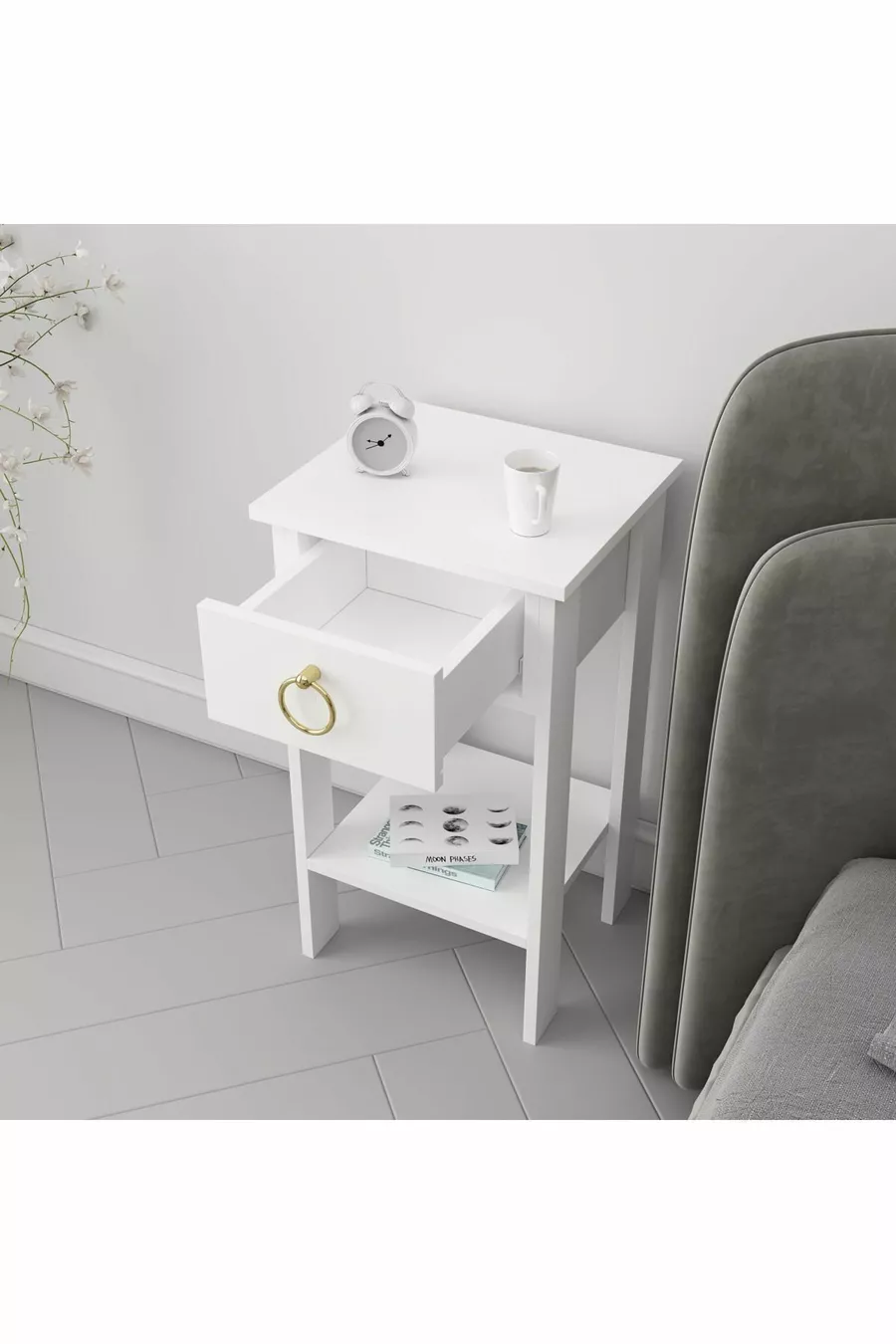 خزانة جانبية لوفيا بمقبض ذهبي أبيض وسحّاب واحد
