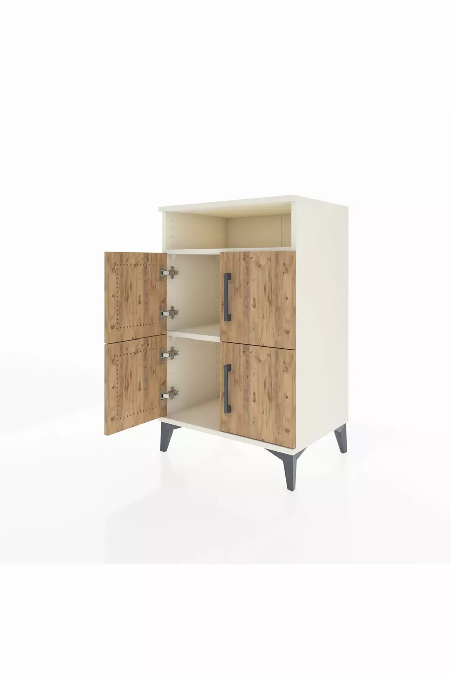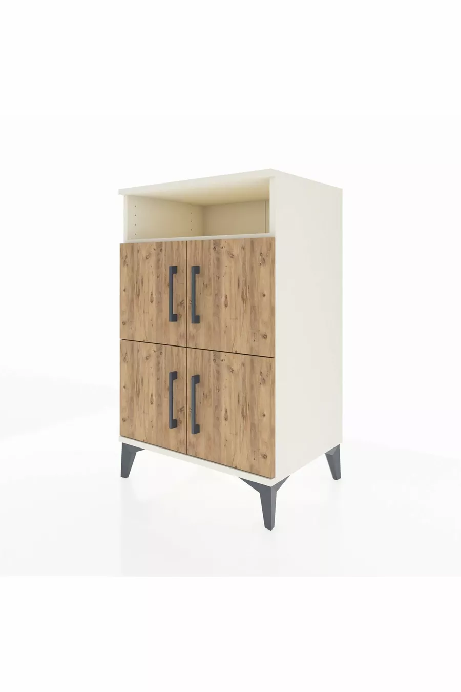 خزانة جانبية هيفريون بطابقين وأربعة أبواب بلون حجر القمر والصنوبر