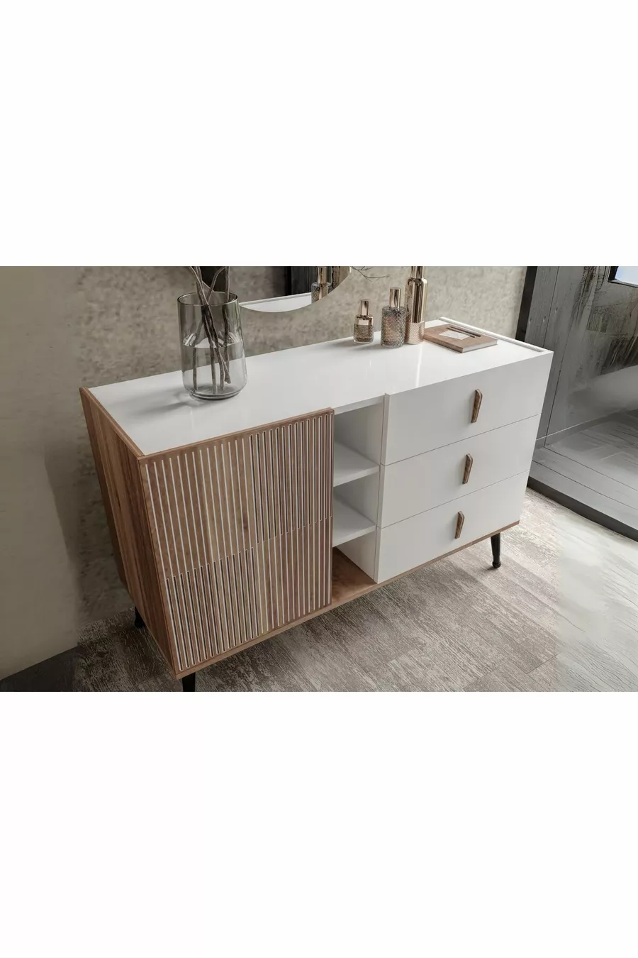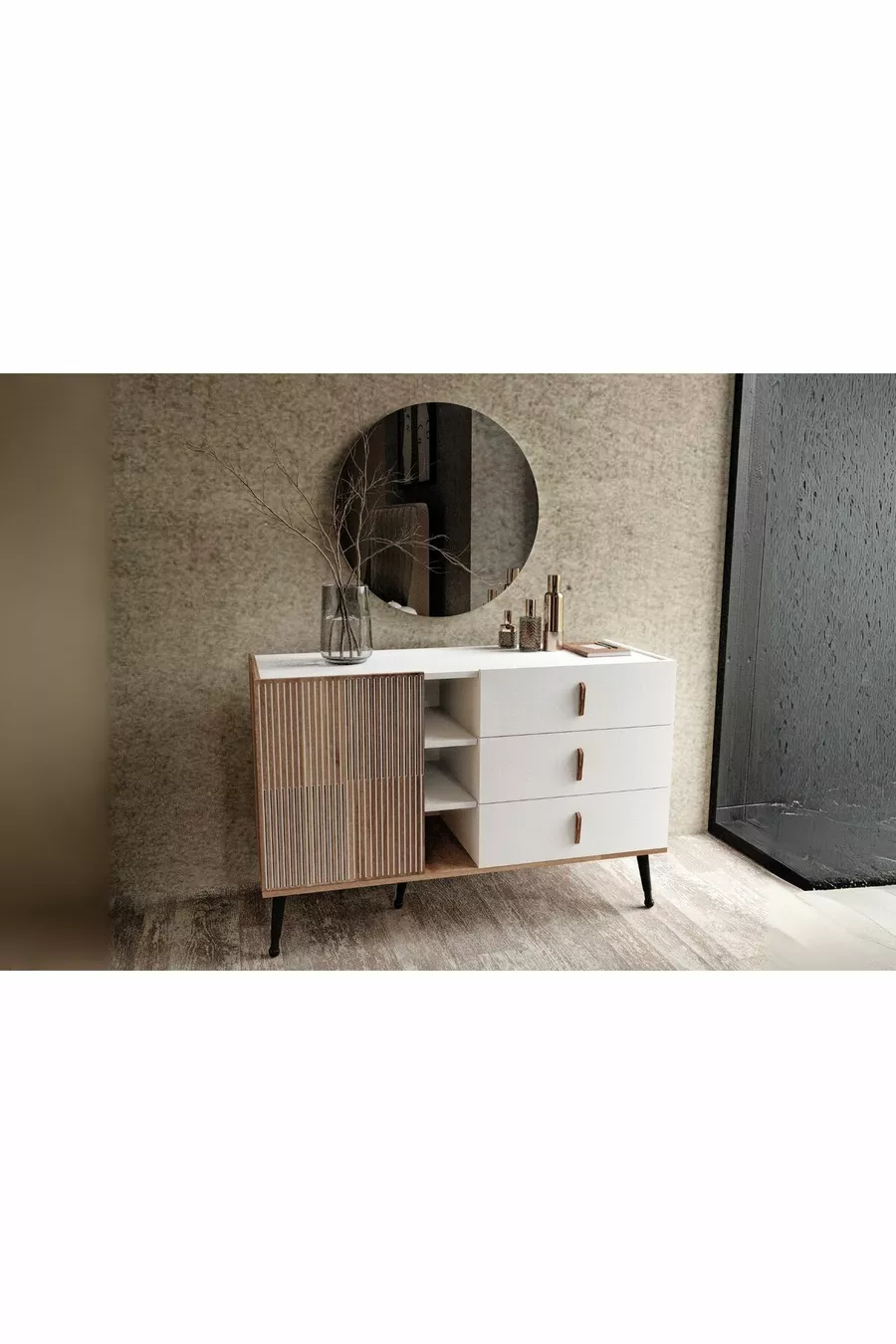 اللون: بني مدة الضمان: سنتان المادة: سونتالام الارتفاع: 80 سم العرض: 125 سم العمق: 45 سم عدد الأدراج: 3 خصائص المنتج: مزود بغطاء وأدراج النمط: عصري الموضوع / النمط: عصري المنشأ: تركيا