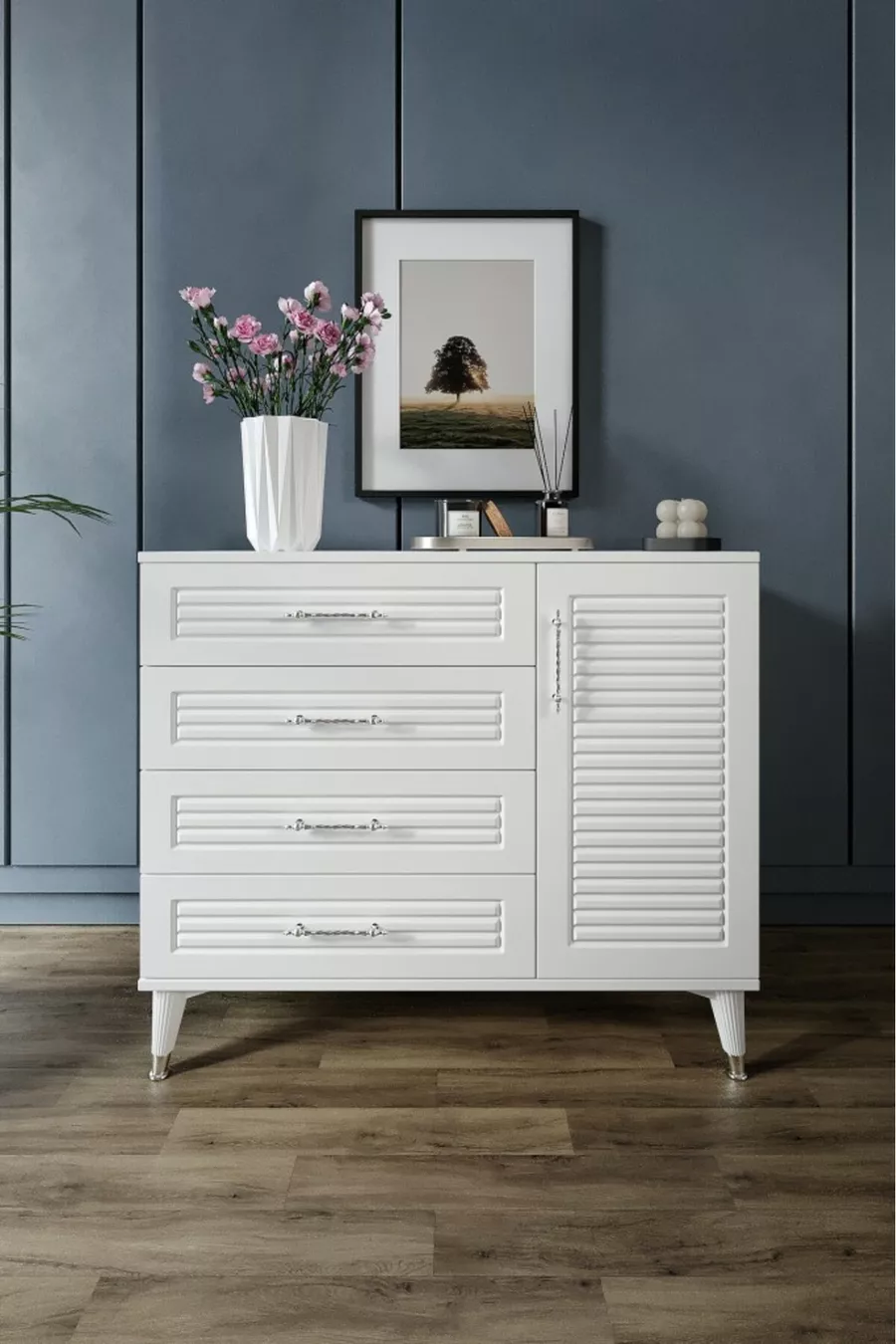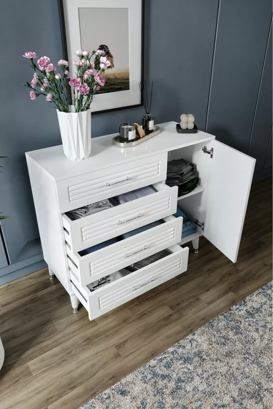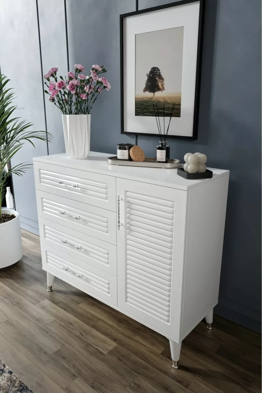 اللون: أبيض مدة الضمان: سنتان المادة: سونتالام الارتفاع: 90 سم العرض: 95 سم العمق: 40 سم عدد الأدراج: 4 ميزة المنتج: مع باب وأدراج الستايل: حديث الموضوع / النمط: حديث المنشأ: تركيا الميزة: هوائي