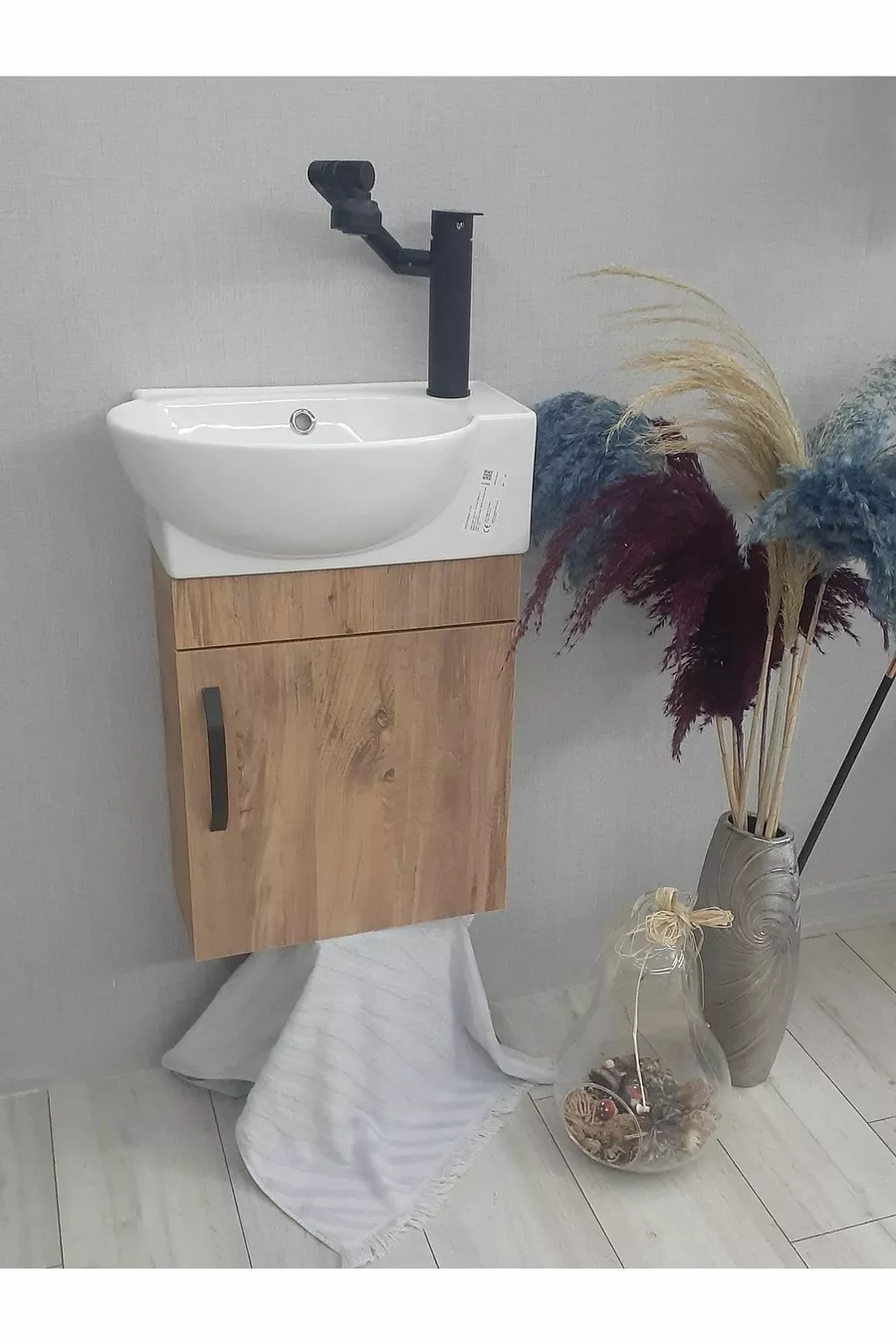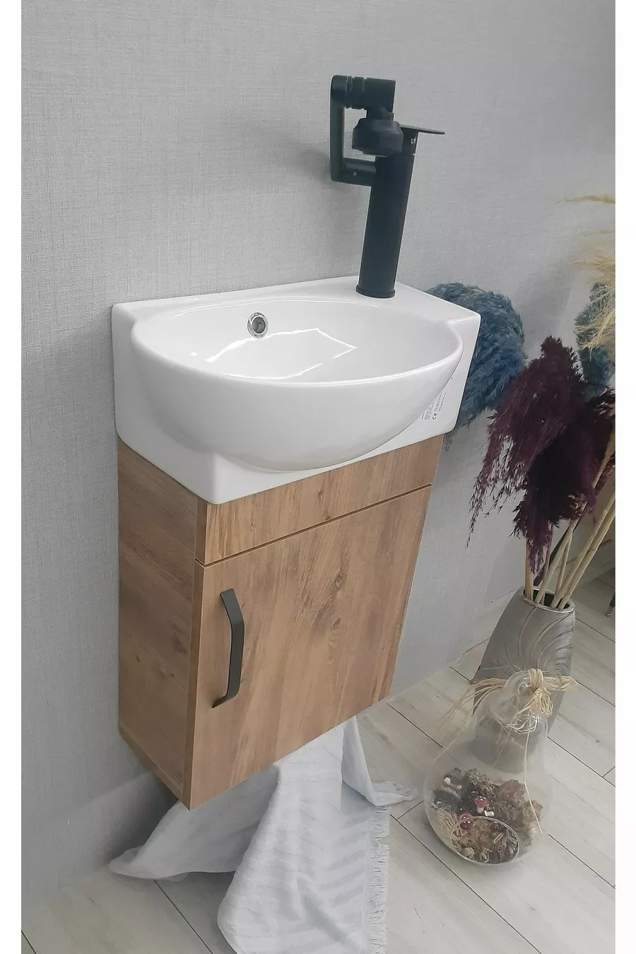 خزانة حمام صغيرة بحوض ومرحاض