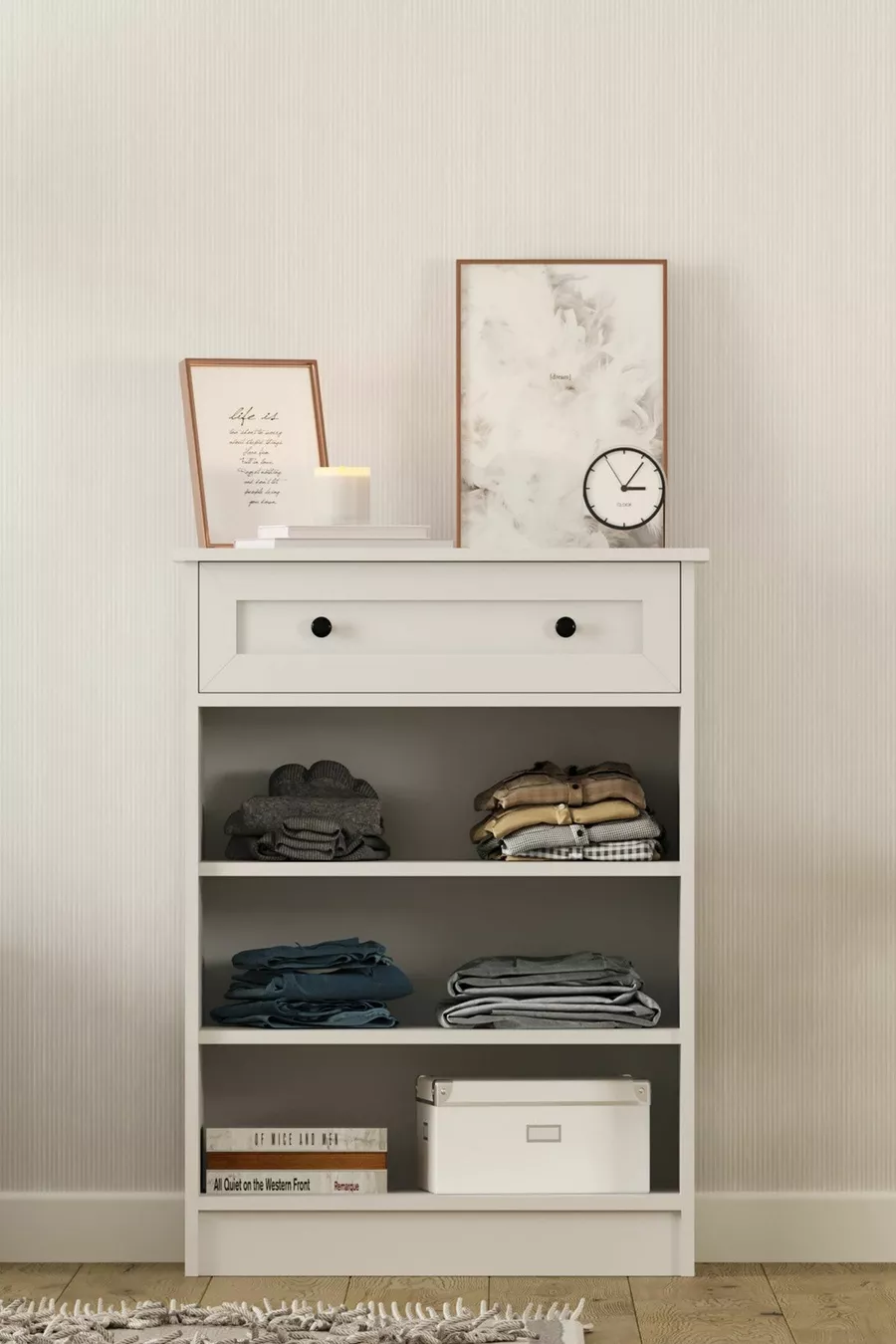 اللون: أبيض مدة الضمان: سنتان المادة: سنتالام الارتفاع: 100 سم العرض: 70 سم العمق: 40 سم عدد الأدراج: 1 ميزة المنتج: مع غطاء ودرج الطراز: اسكندنافي الموضوع / الطراز: اسكندنافي المنشأ: تركيا الخاصية: قابل للشحن