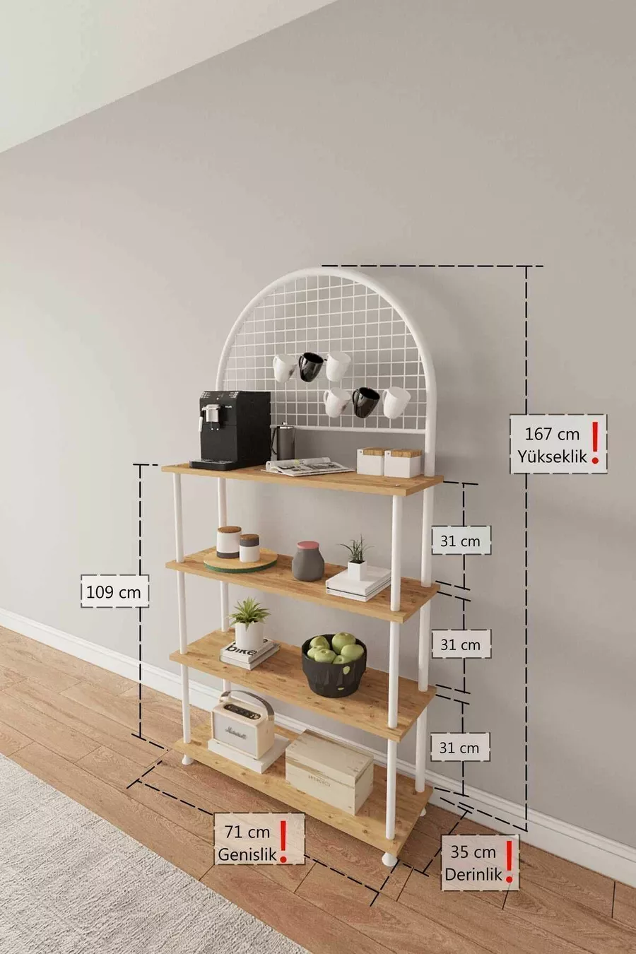 خزانة زاوية القهوة بفروع شجرة الصنوبر من تشيفير كور أتلانتيك ذات 4 رفوف | منظم مطبخ، حامل، سم