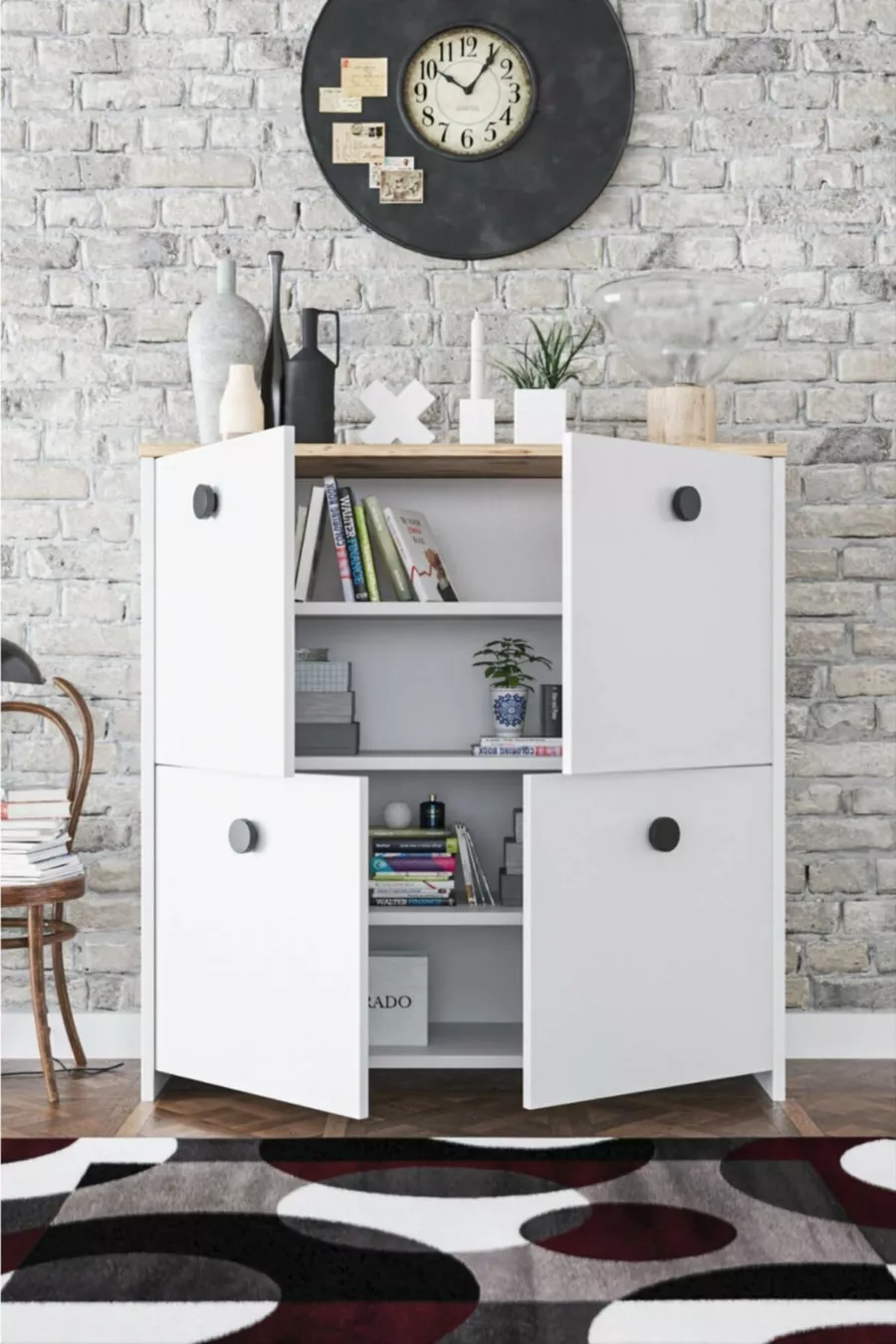 المادة: سنتالام اللون: أبيض الارتفاع: 92 سم العرض: 92 سم العمق: 32 سم مدة الضمان: سنتان النمط: إسكندنافي الموضوع / النمط: إسكندنافي المنشأ: تركيا الخاصية: مع رفوف