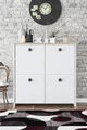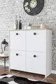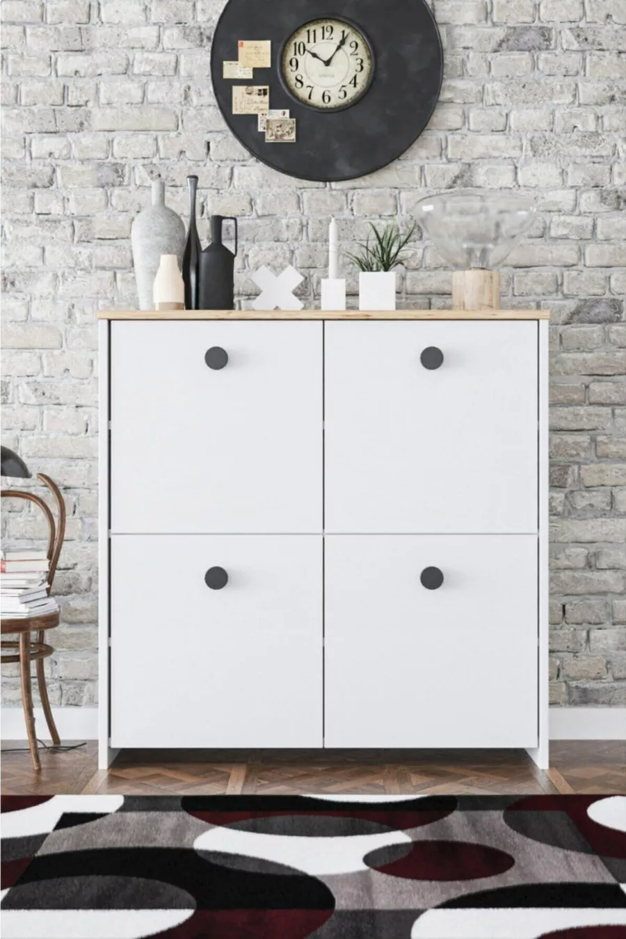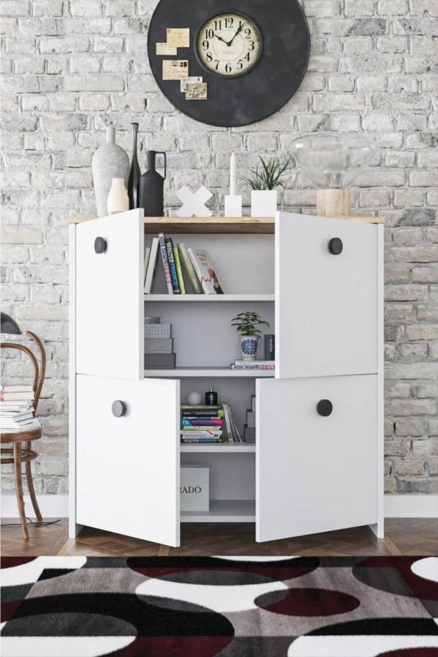 خزانة زخرفية عصرية بأربعة أبواب وأربعة رفوف بلون البلوط الأبيض