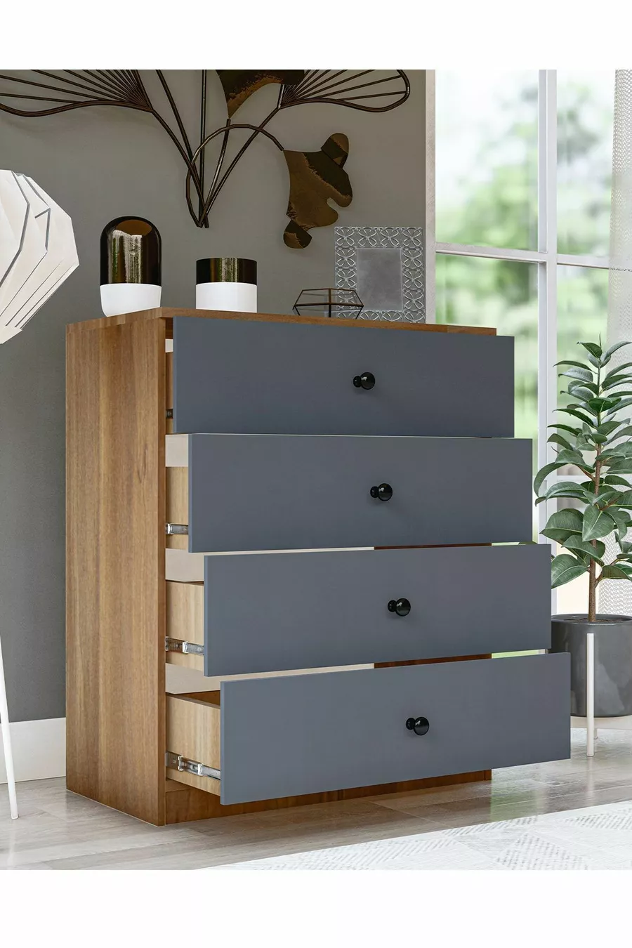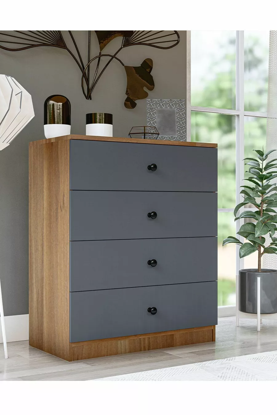 اللون:رمادي مدة الضمان:سنتان المادة:صنطلام الارتفاع:90 سم العرض:80 سم العمق:47 سم عدد الأدراج:4 ميزة المنتج:يحتوي على أدراج النمط:إسكندنافي الموضوع / النمط:حديث المنشأ:تركيا الميزة:يحتوي على أدراج