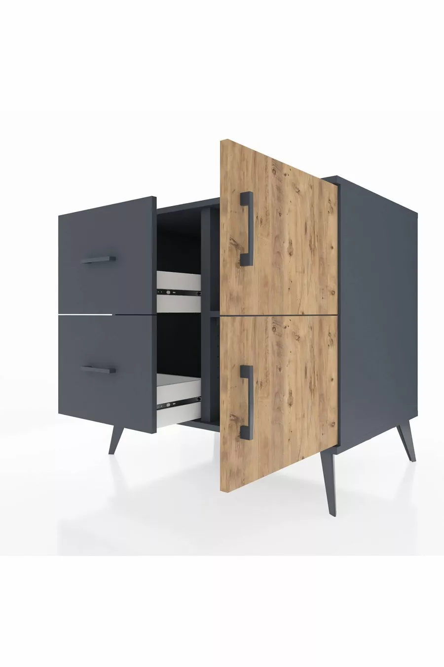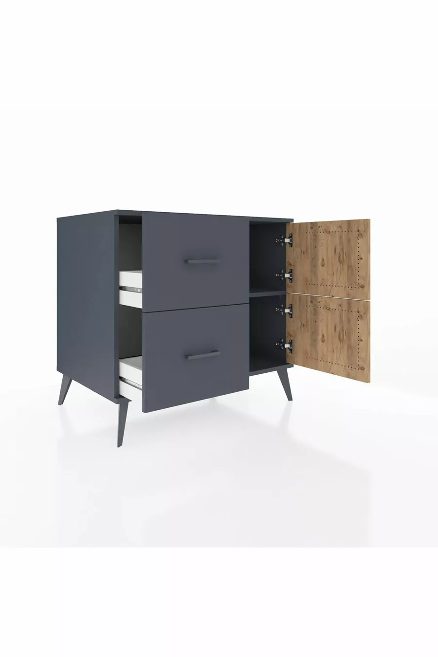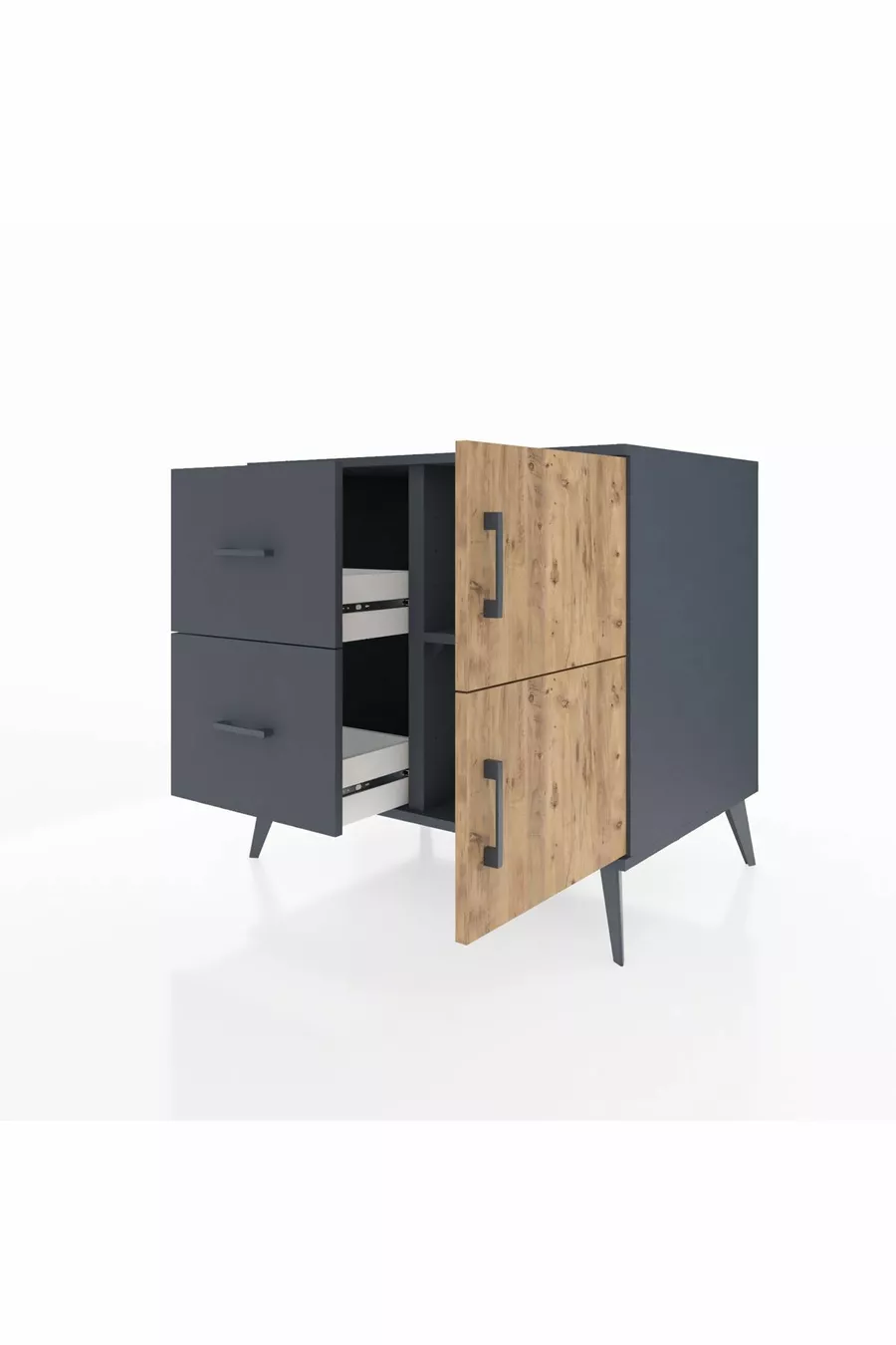 خزانة كرونوس ذات رف واحد، درجين، بابين، أنثراسيت-صنوبر/أنثراسيت