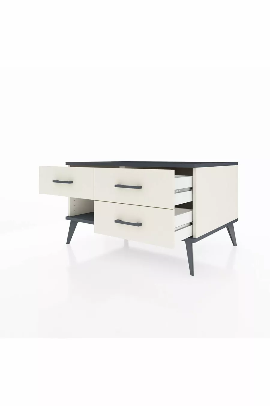 اللون: أبيض المادة: صندلام الارتفاع: 48 سم العرض: 88 سم العمق: 59 سم عدد الأدراج: 3 ميزة المنتج: مزود بغطاء النمط: حديث الموضوع / النمط: حديث المنشأ: تركيا