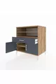خزانة كرونوس مع رفوف 3 ودرج واحد و2 أبواب، صنوبر-رمادي داكن