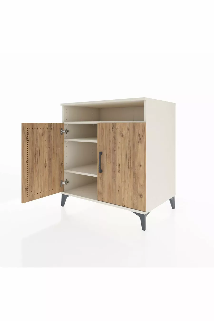 خزانة كرونوس بثلاثة أرفف وغطائين، لون حجر القمر والصنوبر