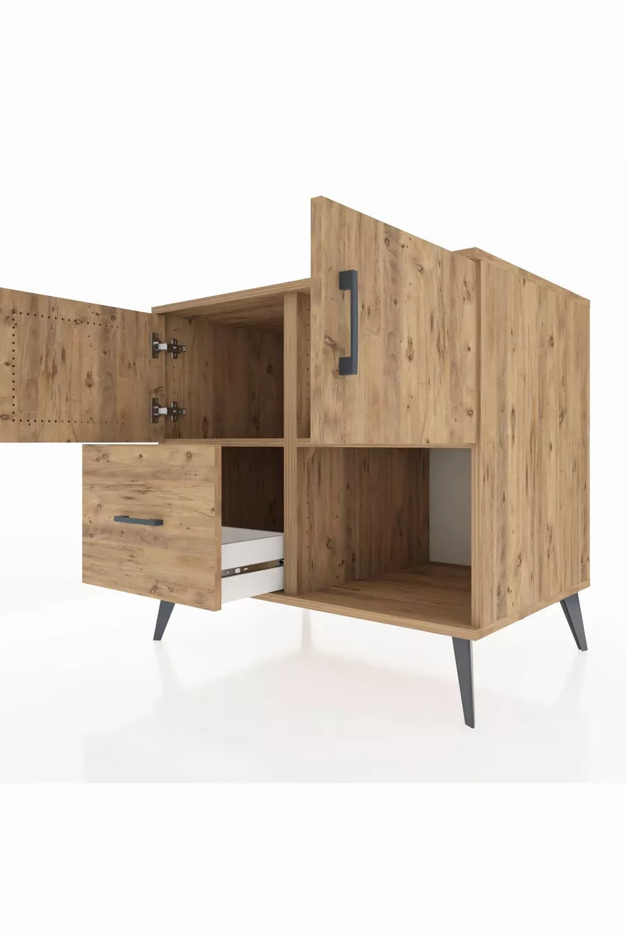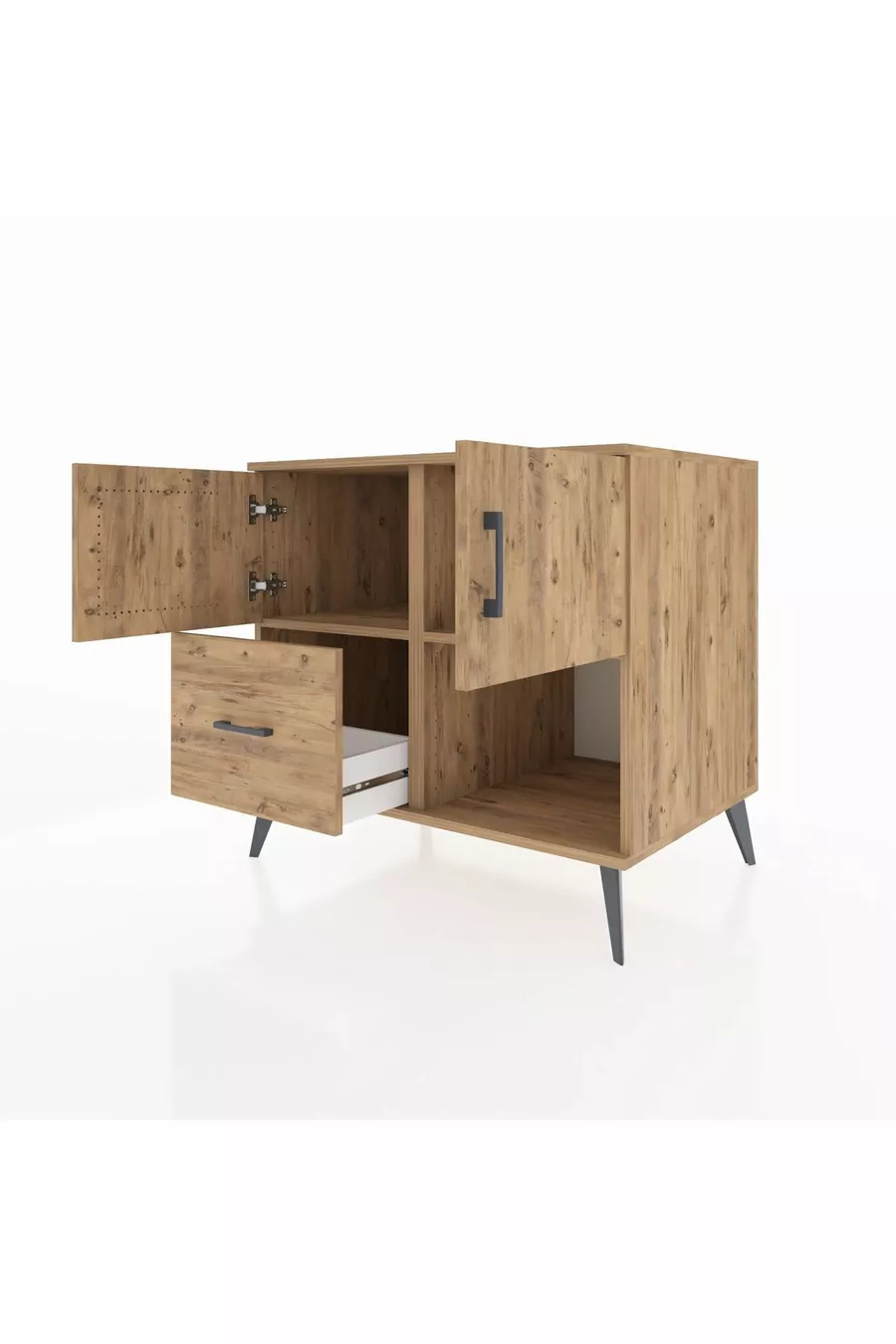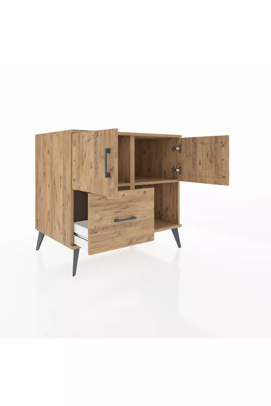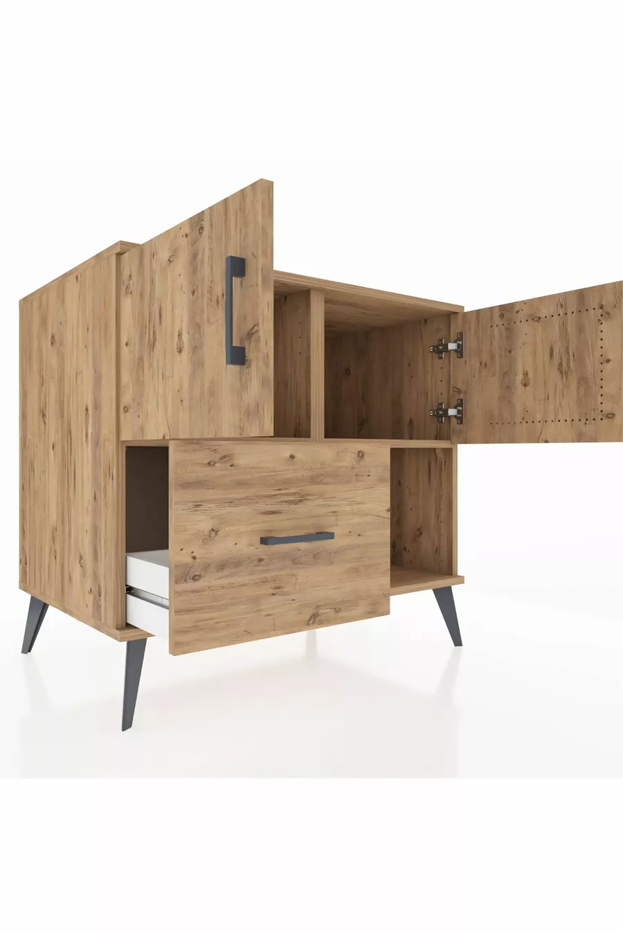 خزانة كرونوس مع رفين، ودُرج واحد، وغطائين، من خشب الصنوبر