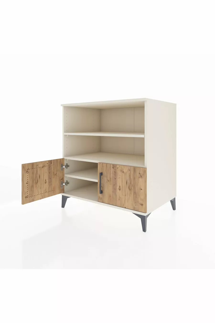 خزانة كرونوس بثلاثة أرفف وغطائين، لون حجر القمر والصنوبر