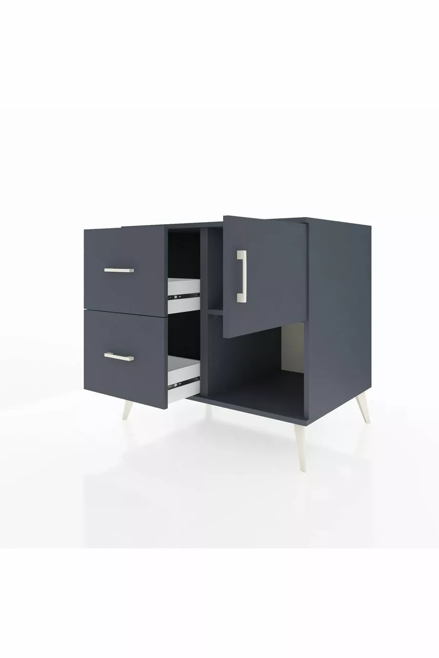 خزانة كرونوس مع رف واحد، درجين، باب واحد، أنثراسيت-أنثراسيت