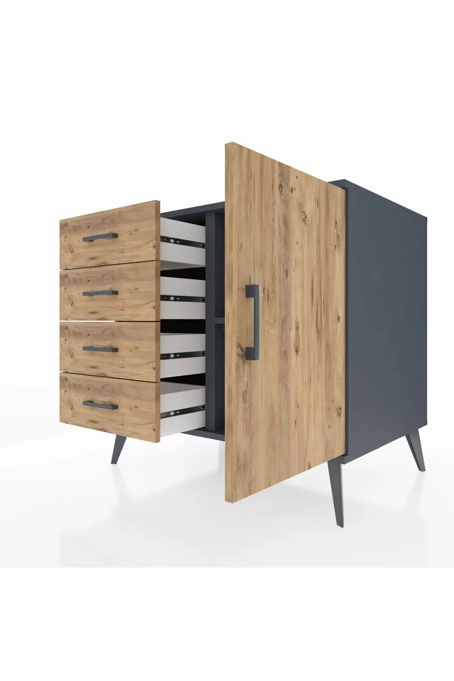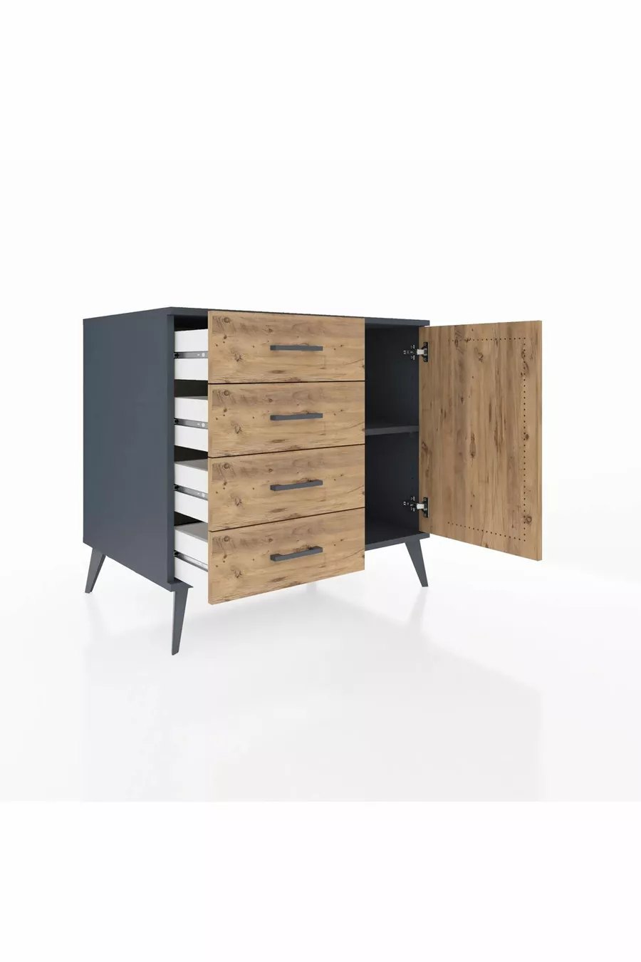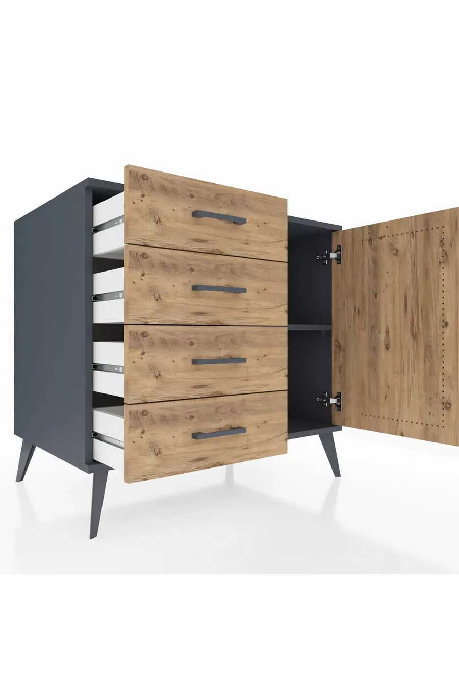 خزانة كرونوس مع رف واحد، 4 أدراج وباب واحد، أنترسايت-صنوبر