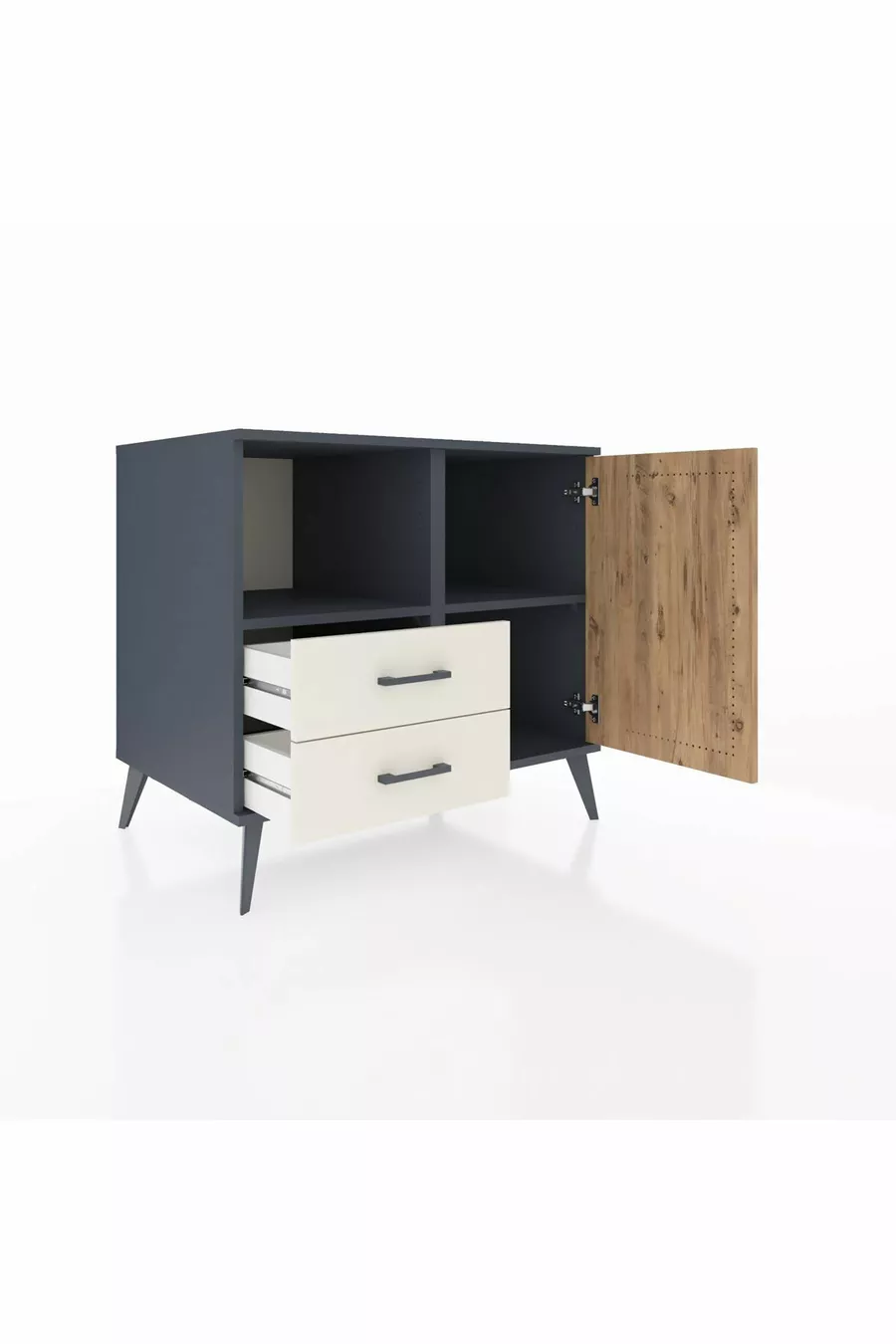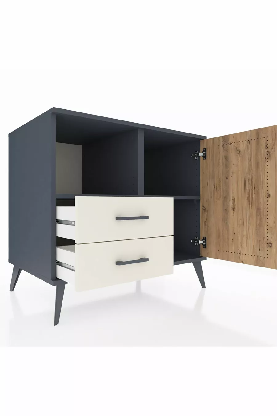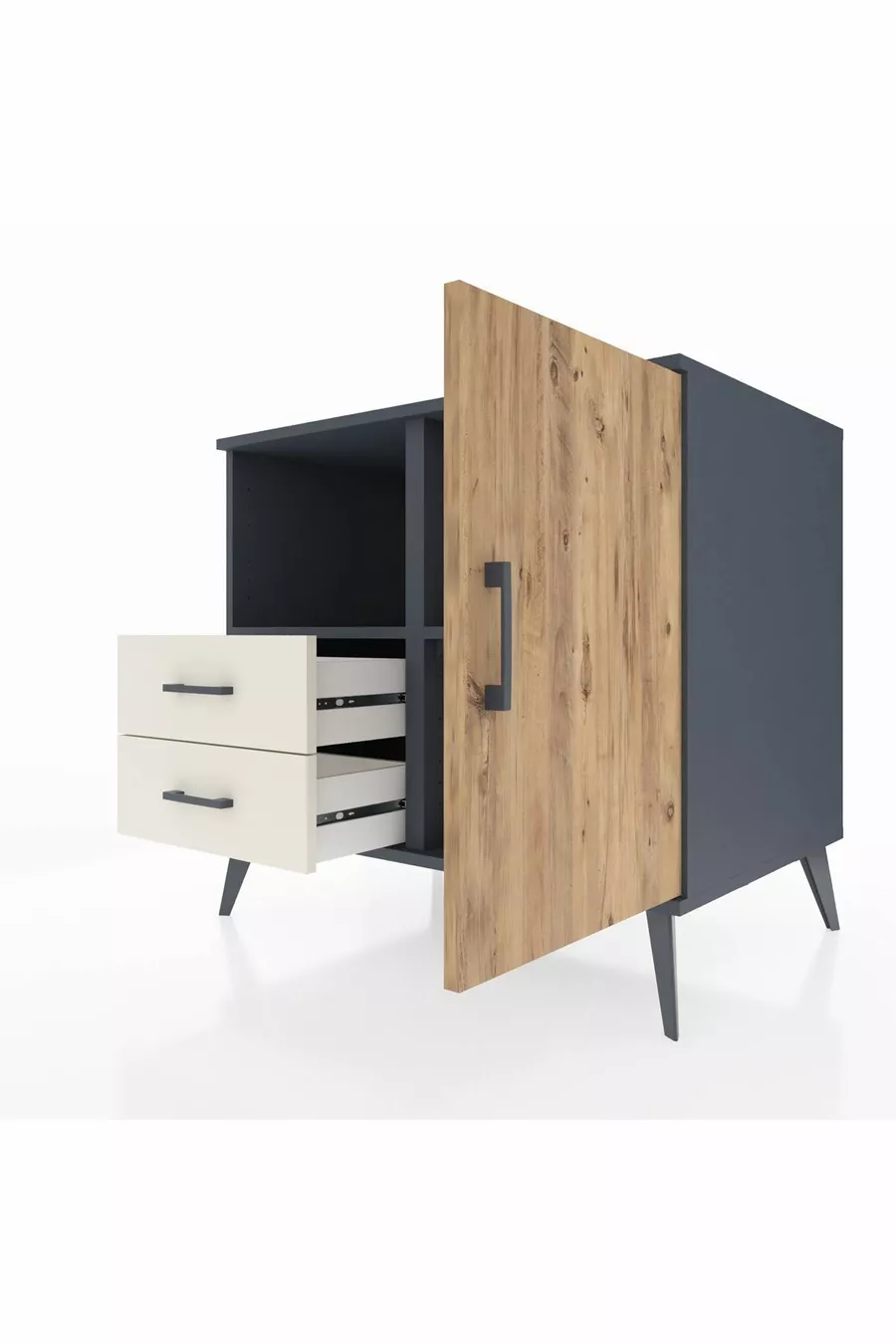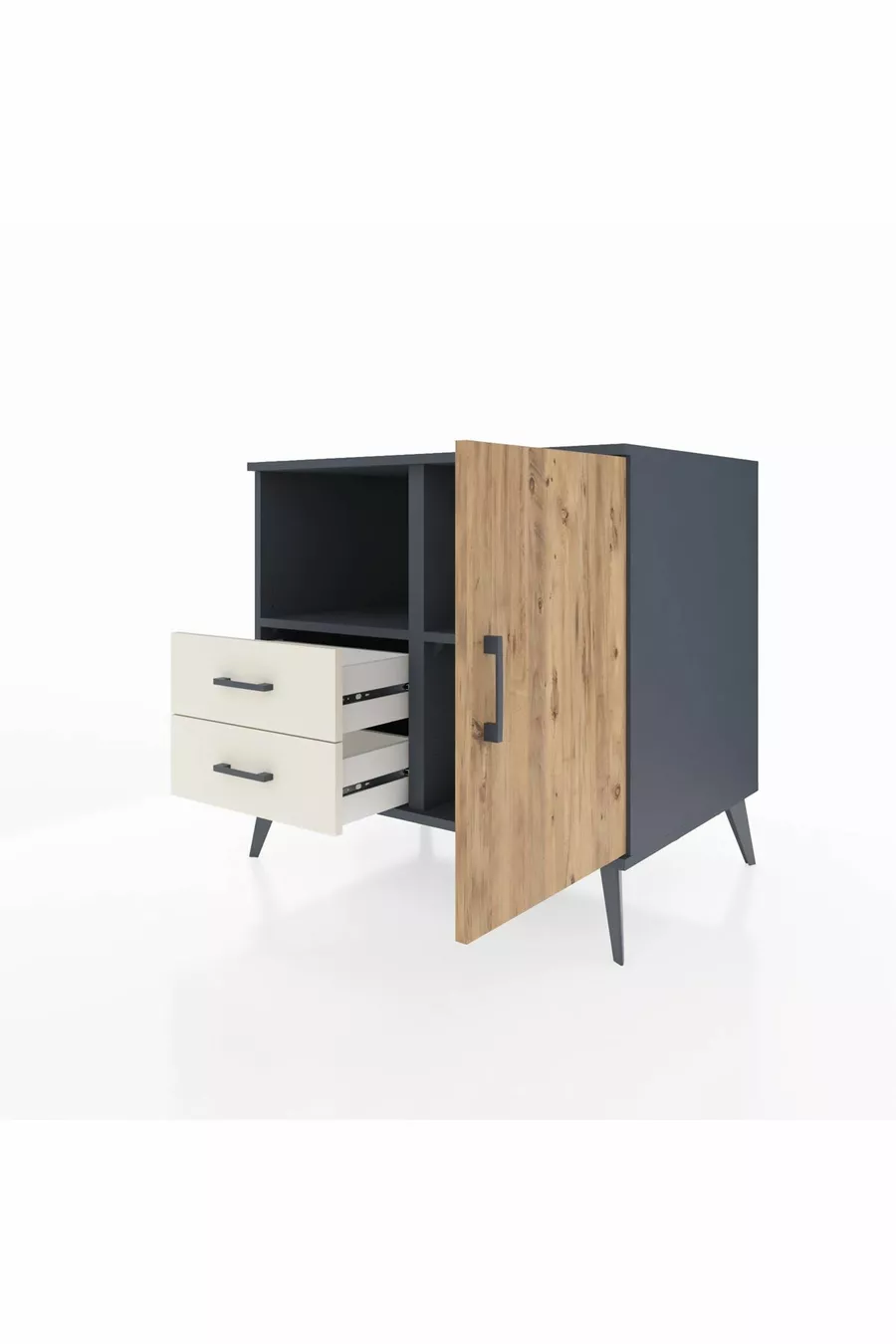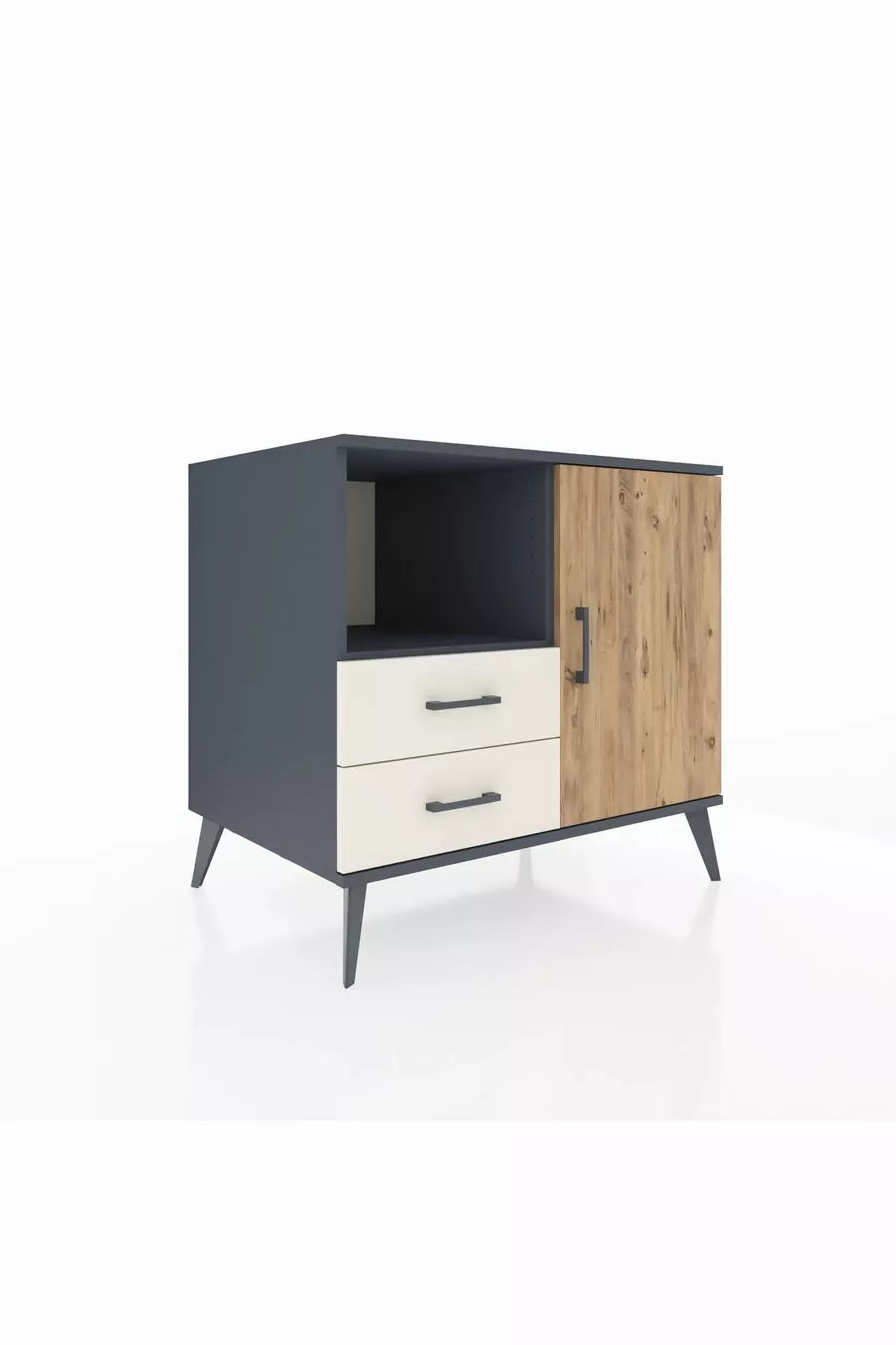 خزانة كرونوس بباب واحد، درجين، ورفين، أنثراسيت-صنوبر/حجر رملي