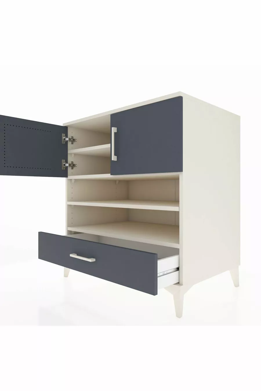 خزانة كرونوس بأربع رفوف ودرج واحد وغطائين بلون حجر القمر - أنثراسيت