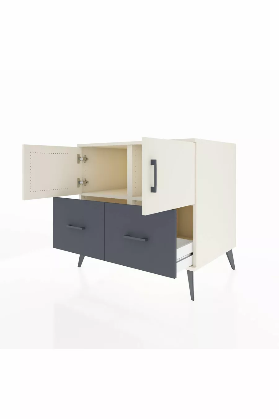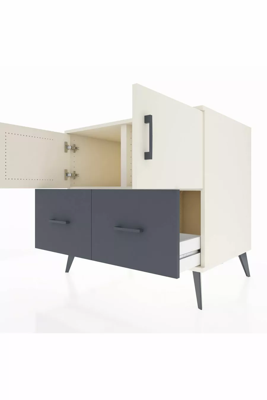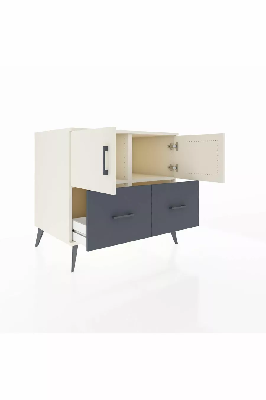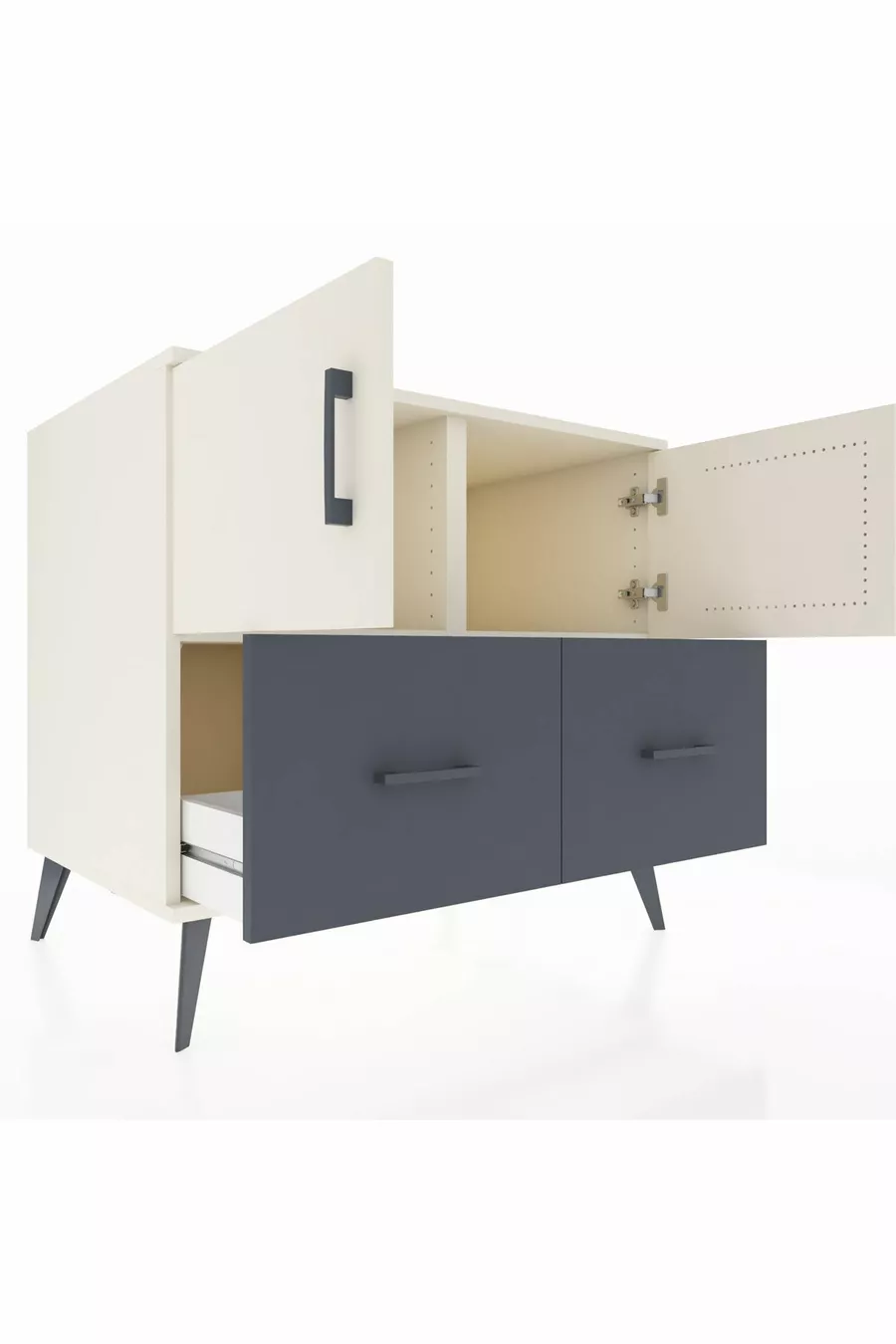 خزانة كرونوس برفّين، درجين، بابين، لون حجر القمر/أنثراسيت