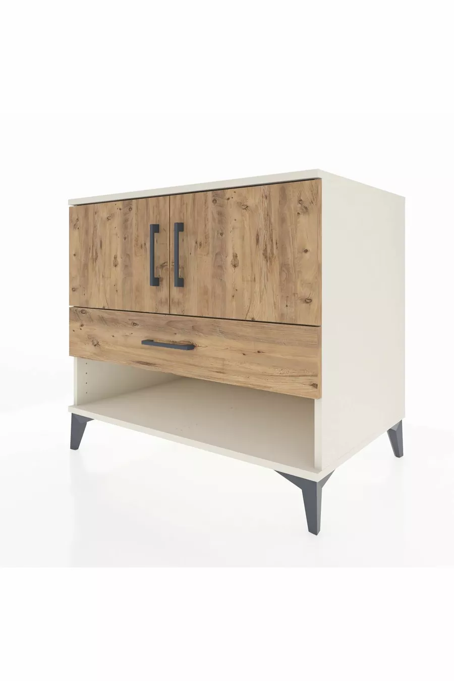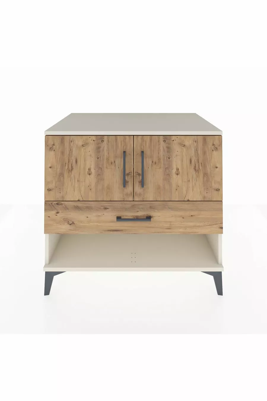 خزانة كرونوس ذات درج واحد ورفين وغطاءين، لون حجر القمر والصنوبر
