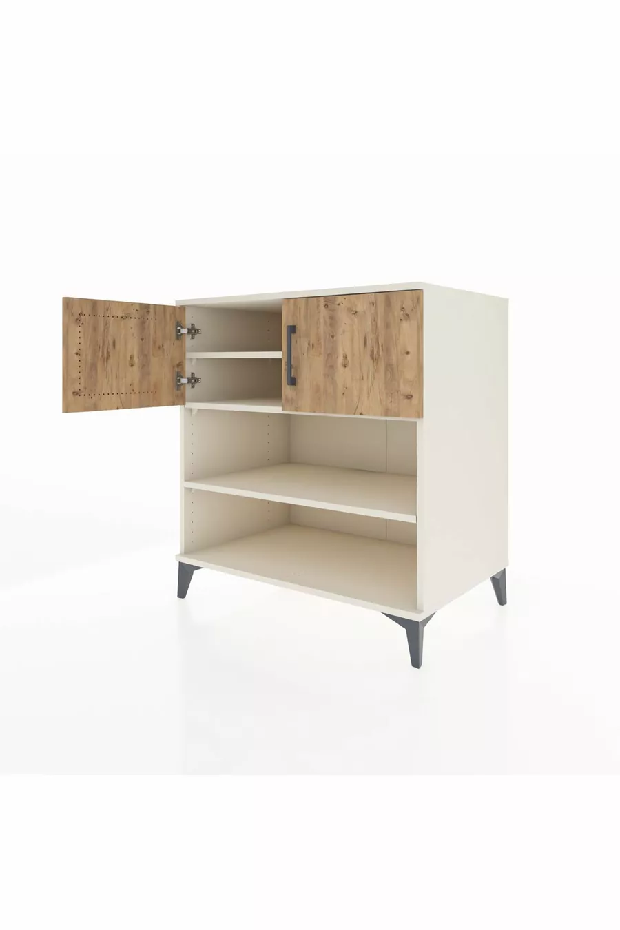 خزانة كرونوس بثلاثة أرفف وغطائين، لون حجر القمر والصنوبر
